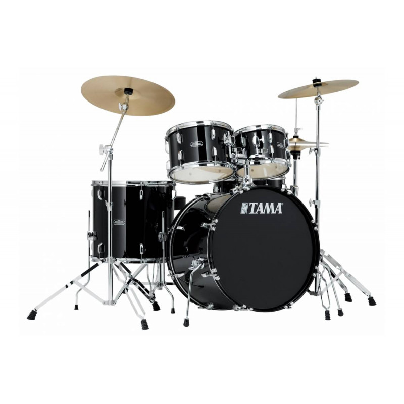TAMA SG52KH6C BK - ударний блок з 5 барабанів серії Stagestar (ствол 22 х16" об'ємом 10 х7", 12 х8", поверх 16 х15, «small 14 x5.5») з пасткою барабанної стійки, стійкою з високим капелюхом, стійкою під тарілкою, похилою стійкою, педаль баса, кріслом барабанщика, набором тарілок, чорним.