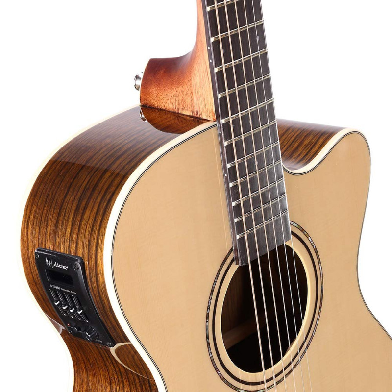 АЛЬВАРЕС RF28CE - акустична гітара, фолк з вирізом і електронікою, чохол в комплекті Deluxe 15 мм, верхня палуба: ялина, задня палуба і обеліск: овангкол, гриф з червоного дерева, колір: натуральний, покриття: глянець.
