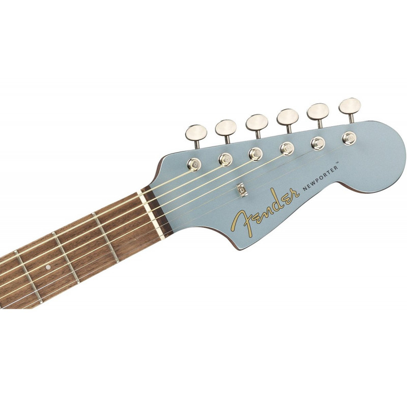 FENDER NEWPORTER PLAYER ICE BLUE SATIN - акустична гітара зі звукодетектором, 6 струнних, форма - грандіозний концерт, верхня палуба - однокомпонентна ялина, обеліск і нижня палуба - червоне дерево, гриф - червоне дерево / горіх, звук-господар - Fishman, колір - синій матовий.