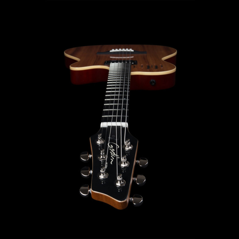 GODIN 037438 - A6 ULTRA KOA HG WITH BAG - акустична гітара зі звукозаписом, Матеріал тіла: обшивка з двома акустичними порожнинами, канадські вапняні бічні сторони, стерв'ятниковий матеріал: червоне дерево, стерв'ятник підкладка: Richlite, menzura: 647.70 мм, ширина верхньої ноги: 1.69" (42.86 мм), колір: природний, глянцеве покриття: глянцеве, глянцеве Коффер/кришка: кришка щільна - Godin Gig Bag, верхній корпус: coa, радіус підкладки шиї: 16" (406.4 мм), верхній матеріал порошку: Graphtech, лад: 22, кількість вугілля: 18:1 (бас) і 26:1 (залишилося).