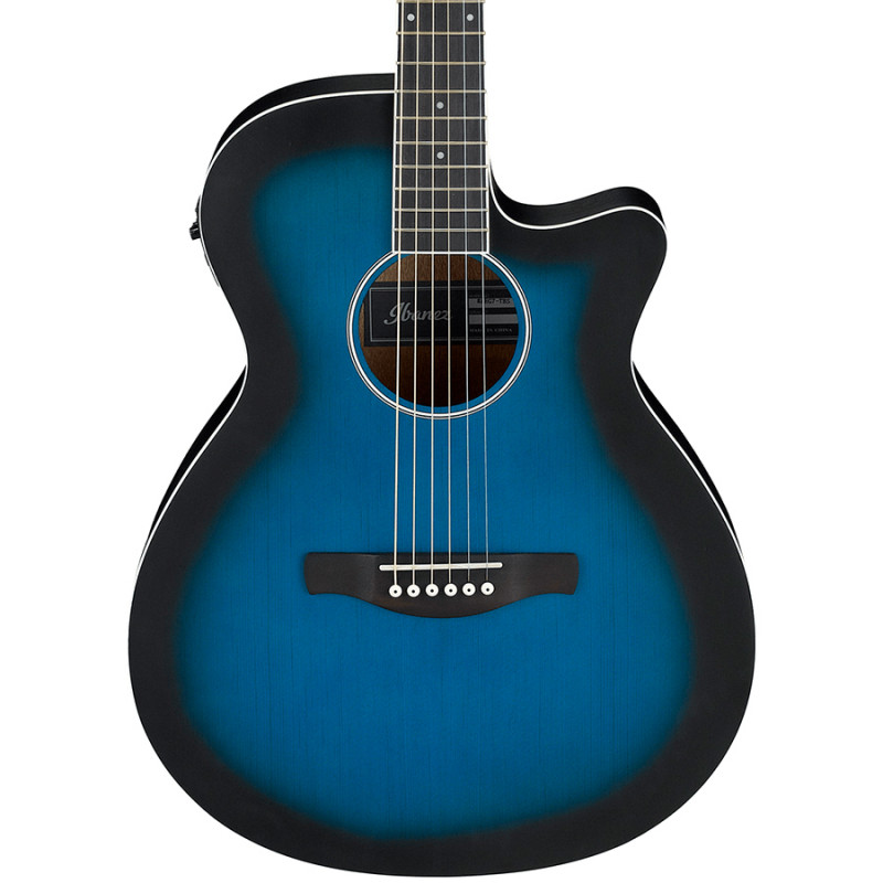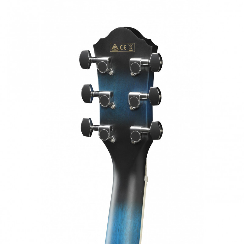 IBANE AEG7-TBO - серія електроакустичних гітар AEG, дека ялина / сапеле, стерв'ятник окум / перплехарт, литі колеса, присідання звукоізоляція, preamp AE-2T з тюнером, синій колір берези.