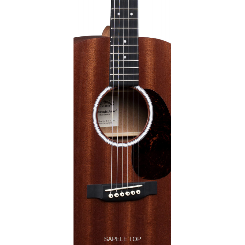 MARTIN DJr-10E-01 Dreadnought Junior - акустична гітара з детектором звуку, верхня палуба: цілий сапель, нижня палуба: цілий сапель, стерв'ятник: цілий сапель, шифер: твердий сапель, гриф: тверда деревина з насиченою облицюванням, ширина грифу: нуль лад: 1 3/4', 12-й лад: 2 1/8'', міст: багате світло, скрипки: білий коріан, нижні пори: Компенсують Білий Тузк, вихід: Перловий візерунок з мульти-смугою, інкрустації: перлові точки - маркери хлопців, хром: хром, закритого типу, мензура: 24", лади: 20, система зв'язок колоди: X Брекети, гребінці, звукооператори: 12 місяців (механічні компоненти приладу), обладнання: чорний по корпусу, колір: натуральний матовий, виробництво: Мексика, гарантія: 12 місяців (механічні компоненти приладу), обладнання: