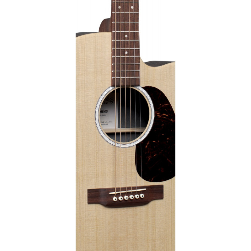Ця дредноутна модель має верхню палубу твердої ялини Ситки, нижню палубу і ламінат високого тиску з малюнком макасарного дерева (HPL). Нова перлинна вставка з малюнком на розеток і грифом надає багатство моделі DC-X2E, роблячи її такою ж вражаючою, як і гра на їй. Завдяки профілю виконавиці, грифу і мосту з підбираної деревини звук цієї моделі значно покращився. Інструмент оснащений електронікою Fishman® MX і автентичною акустичною машиною Мартіна® 2,0 струни. Новий м'який корпус з захистом голови грифом і мостом, міцна водозштовхувальна поверхня і пінопластовий наповнювач дозволяють надійно транспортувати цю модель.