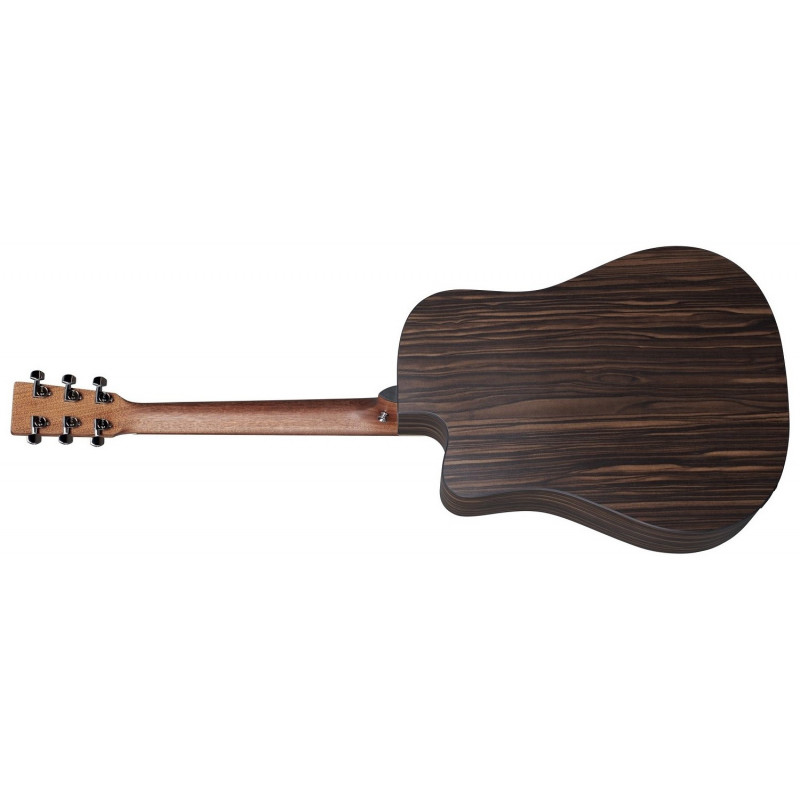 MARTIN DC-X2E Macassar - акустична гітара з усувающим звуком, дредноут, з вирізом, верхня палуба з суцільної ялини, обітниця і низ малярного ламінату, гриф і накладка довколисних деревних твердих порід, ширина грифу на нульовому ладі: 1 3/4", 20 ласт, Menzura 25.4", верхній коріанський флоґінг, нижні плавки: білий туск, фішо-саундер з активним Fishman MH timbroblock, ставки закритого типу з металевими ручками, Струни Authentic Electric® 2.0 Light - 92/8 Фосфорна бронза MA540T, колір: натуральний, чехословацький.
