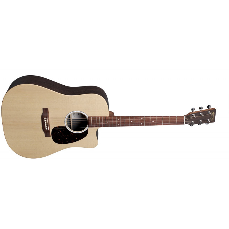 MARTIN DC-X2E Rosewood - акустична гітара зі звукозаписом, дредноут, з вирізом, верхня палуба з однотонної ситки ялини, намистини і дна ламінату палісадера, гриф і накладка додалого дерева з твердих порід дерева, ширина грифу на нульовому лад: 1 3/4", 20 ладів, Menzura 25.4", верхній коріанський флогінг, нижні плавки: білий туск, фішо-звуковий з активним Фішманом MH timbroblock, ставки закритого типу з металевими ручками, Струни Справжня тривалість життя® 2.0 Light - 92/8 Фосфорна бронза MA540T, колір: натуральний, дія.