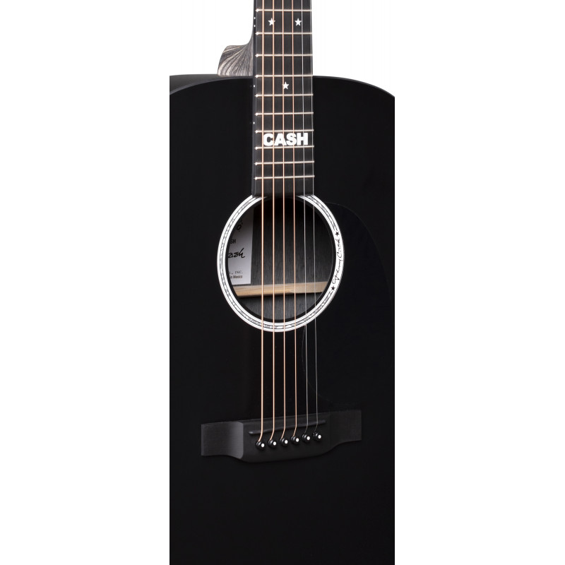 MARTIN DX JOHNNY CASH — акустична гітара зі звукозаписом, дредноут, верхня палуба, намистин і дно ламінату HPL, стерв®яний березовий ламінат з насиченою підкладкою, ширина шиї на нульовому ладі: 1 3/4" 20 лафтів, мензура 25.4", верхній коріанський флоґінг, нижній флогінг: 2.0 Light, 92/8 Бронза M540T, чорний, чорний.