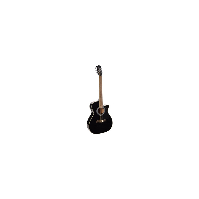 RICHWOOD RA-12-CE BK - електроакустична гітара, форма тіла: аудиторія, верхня палуба: ялина, нижня палуба і намистин: ламінований вапно, гриф: індонезійське червоне дерево, міст і підкладка на шиї: акація, електроніка: Richwood E-5, чорний.