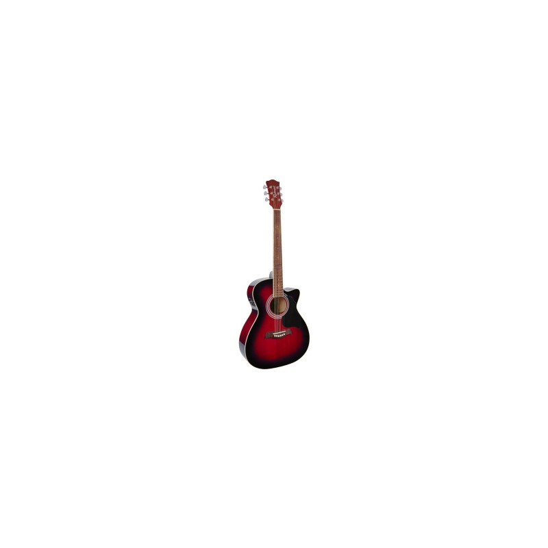 RICHWOOD RA-12-CERS - електроакустична гітара, форма тіла: глядацька зала, верхня палуба: ялина, нижня палуба і корч: ламіноване вапно, гриф: індонезійське червоне дерево, міст і облицювання на гриф: акація, електроніка: Richwood E-5, червонокнижний колір.