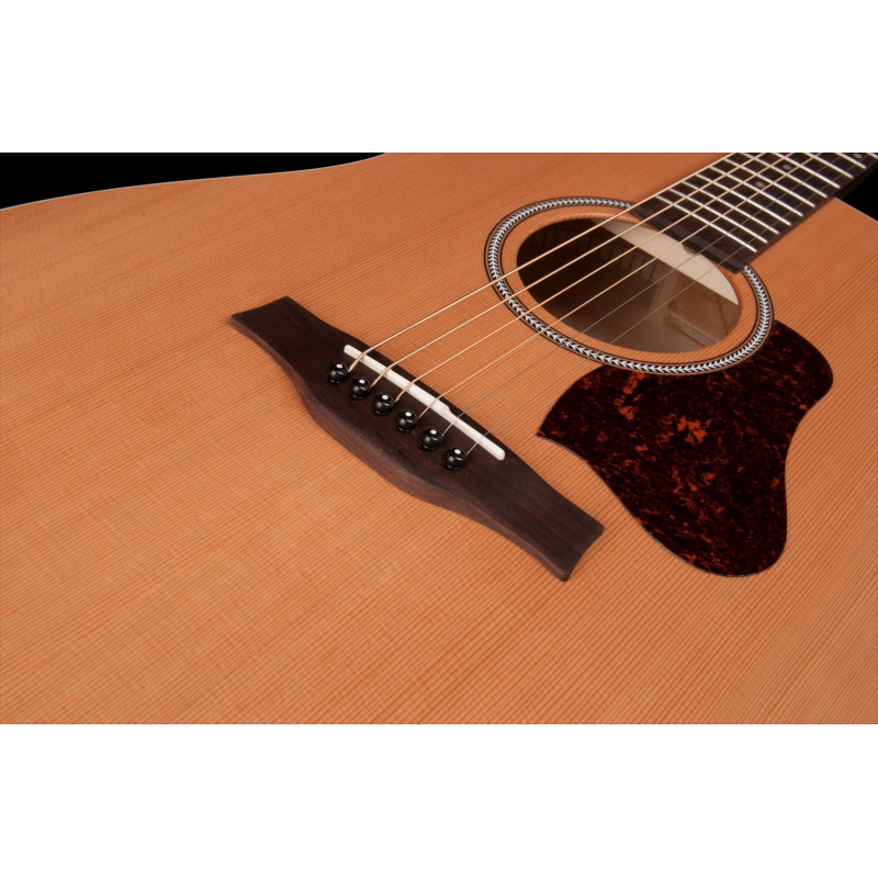 SEAGULL 046416 - S6 Original SLIM - акустична гітара зі звукодетектором, задня палуба і короста: дика вишня, матеріал верхньої палуби: вибраний кедр з однієї частини, форма тіла: Дредноут, матеріал грифів: клен, облицювання і місток: палісандер, ширина хліба: 1,72" (43,69 мм), мензура: 647,7 мм, кількість ладів: 21, глибина Корпусу: 124,46 мм, довжина тіла: 502,92 мм, ширина дна: 403,1 мм, ширина талії : 10.54" (267.72 мм), ширина верхньої: 289.05 мм, покриття: Напівглянсовий польський індивідуальний фініш, електроніка: Godin EPM quantum 1T.