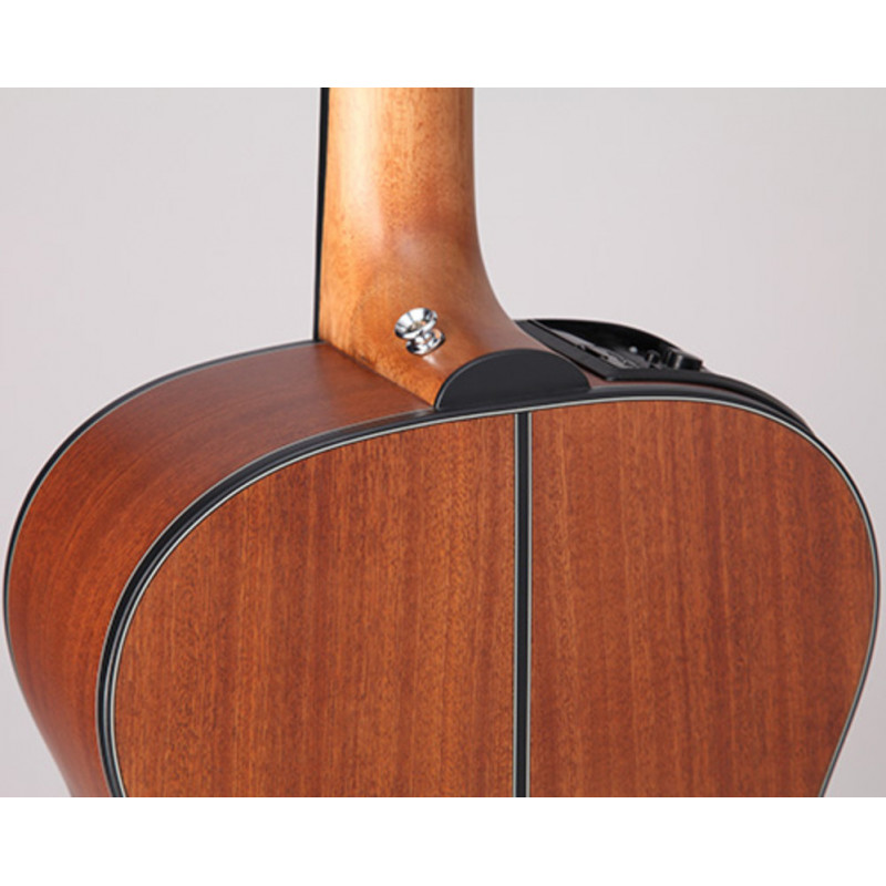 TAKAMINE GX11ME NS заснований на оригінальній формі колоди NEX і виготовлений з твердого дерева для справжнього звучання акустичної гітари. Махагоні пропагує теплий і резонансний тон. Розмір 3/4 має хорошу проекцію і надає збалансований, глибокий звук, який ідеально підходить для вокальних виступів. Атласне покриття колоди і синьо-картковий гриф приємно відчуваються в руках, а невеликий розмір робить гітару більш комфортною для створення музики.