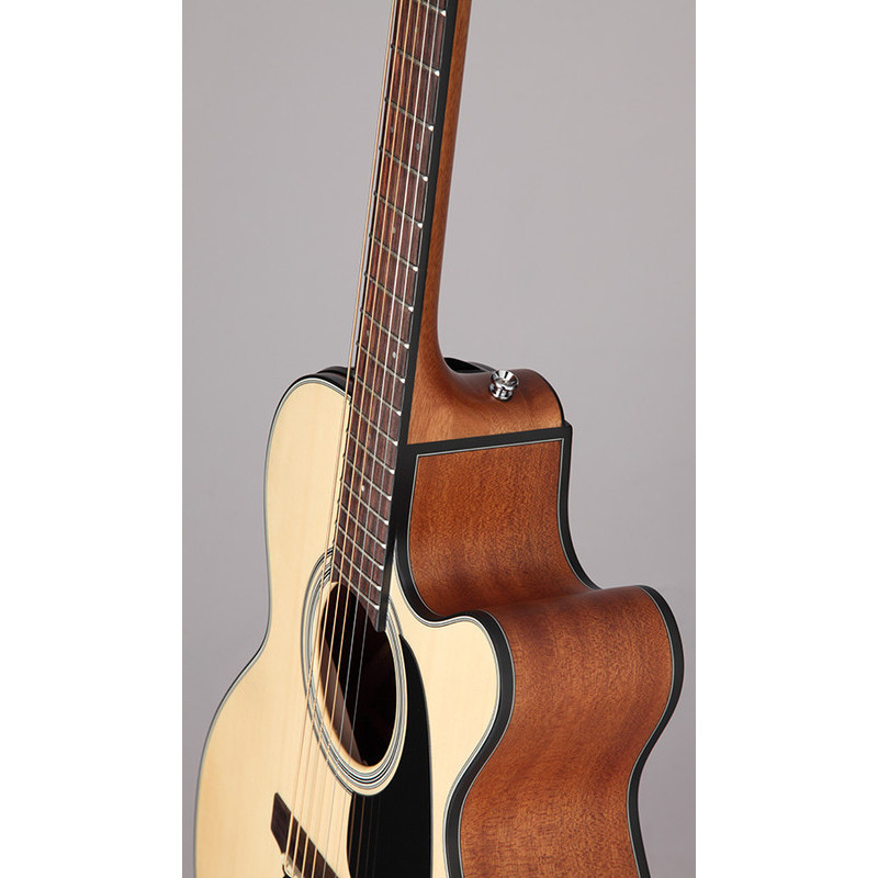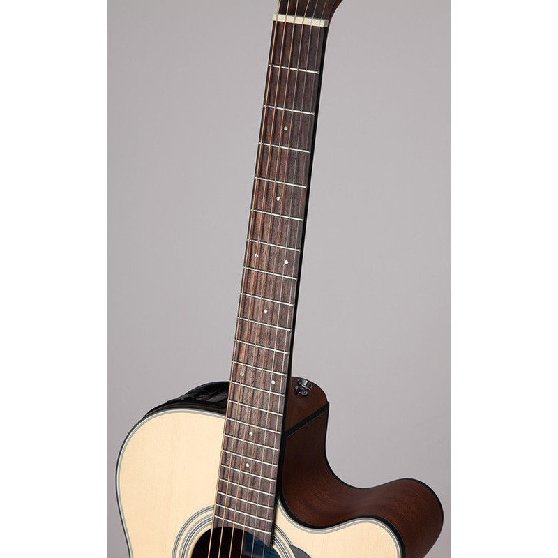 TAKAMINE GX18CE NS заснований на оригінальній формі колоди NEX і виготовлений з твердого дерева для справжнього акустичного гітарного звучання. Махагоні пропагує теплий і резонансний тон, а верхівка ялини додає яскравості. Розмір 3/4 має хорошу проекцію і надає збалансований, глибокий звук, який ідеально підходить для вокальних виступів. Атласне покриття колоди і гриф махагона приємно відчуваються в руках, а виріз полегшує доступ до верхніх ладів.