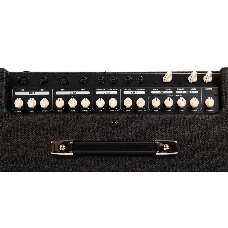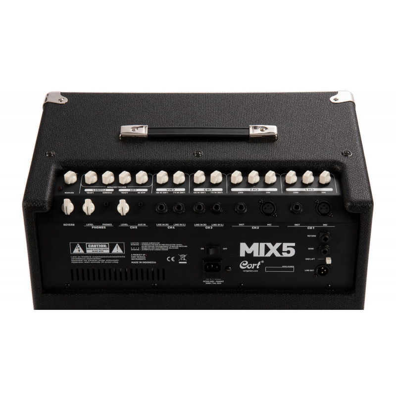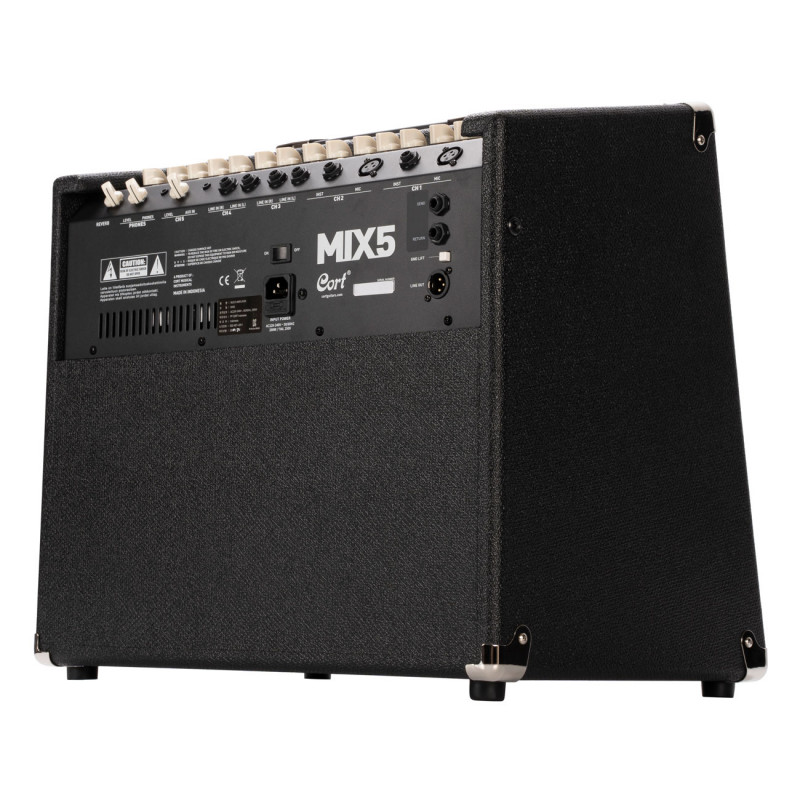 MIX5 - це багатоцільовий комбо потужністю 150 Вт з 5 вхідними каналами, 4-смугний еквалайзер і вбудований ревербератор, який забезпечує відмінну якість звуку і гнучкість в міцному корпусі, який ідеально підходить для невеликих і середніх площ і вуличних виступів. MIX5 може бути підключений до широкого спектру інструментів, таких як акустичні та електричні гітари та баси, електронні барабани та драм-машини, мікрофони, клавіатури та інші джерела звуку, використовуючи різні параметри вводу, розташовані у верхній частині панелі MIX5 для зручності. Незалежно від того, що або скільки інструментів ви підключаєте, міцний дизайн MIX5, поряд зі спеціально розробленими 12-дюймовими динаміками та твітером, забезпечує оптимальний та чистий звук.