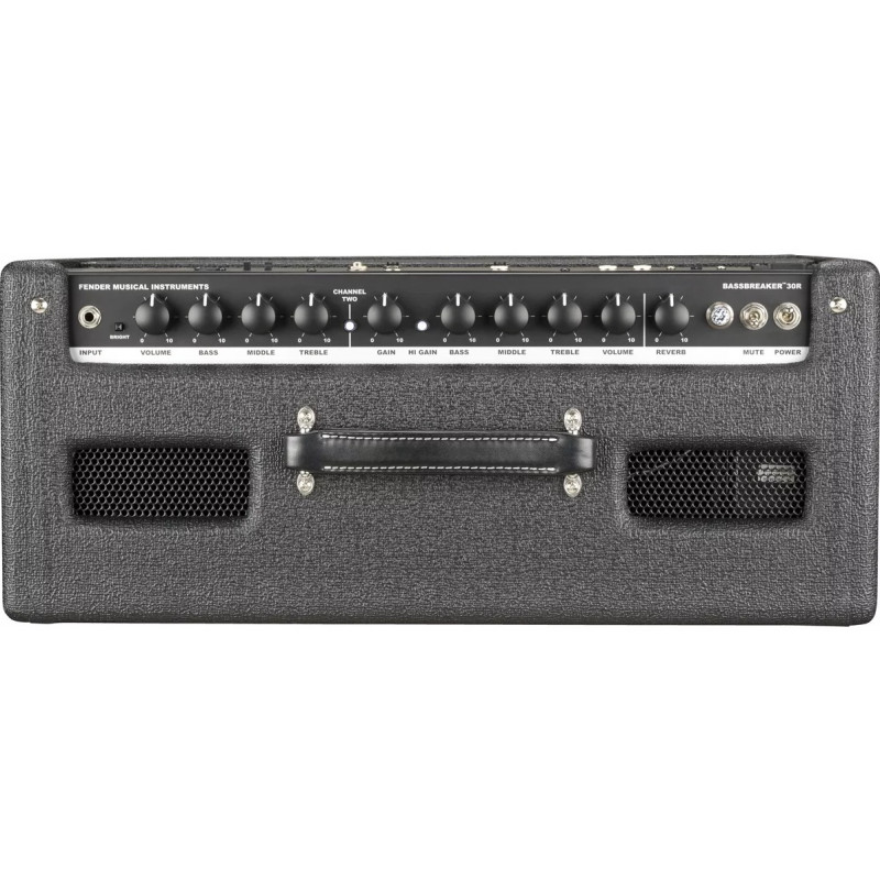 FENDER BASSBREAKER 30R - електрогітарний комбо підсилювач, Схеми: лампа, потужність: 30 Вт, конфігурація динаміка: 1 х 12", цикл ефектів: там, опір: 8 Ом, кількість каналів: 2, еквалайзер: 3-смуговий: Treble, Middle, Bass (окремо для кожного каналу), управління: регулятори: Gain, Bass, Middle, Treble, Volume, Reverb; Кнопка: Яскрава; Перемикач опору, лампи: 3 х 12AX7; 4 x EL84, записи: 1 x 1/4"; 1 х 1/4" (канал, підвищення); 1 х Джек (1/4) - Повернення, виходи: 1 х 1/4" (основний динамік); 1 х 1/4" (подовжувач); 1 x XLR (збалансований); 1 х Джек (1 / 4") - Відправити.