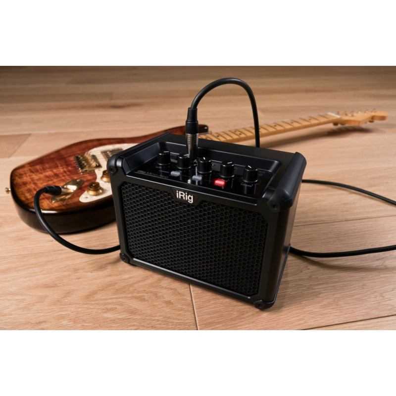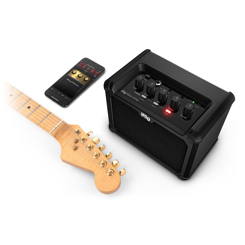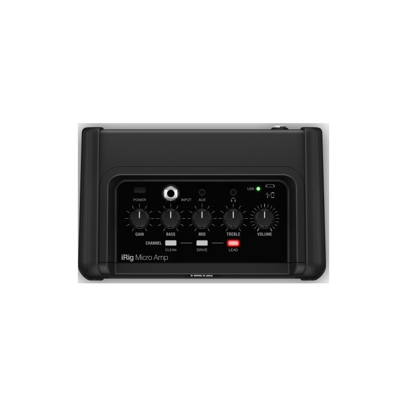 IK MULTIMEDIA iRig Micro Amp - міні-комбо для електрогітари, потужність: 15 Вт, гучномовець: 4", 1/4" інструментальний вхід, 1/4" вихід для підключення гітарної шафи (4 - 16 Ом), вихід 3,5 мм навушників, роз'єм мікро-USB для підключення до iOS/Mac/PC (10 підсилювачів і 26 педалей ефектів для iPhone та iPad, 9 амфітеатрів і 10 педалей для Mac/PC), 24 біт/96 кГц, 3 канали (Чистий, Привід, Свинець), 3-смуговий E.I., Посилення, Гучність, потужність: 6 х AA акумулятор (повний), час роботи: до 15 годин.