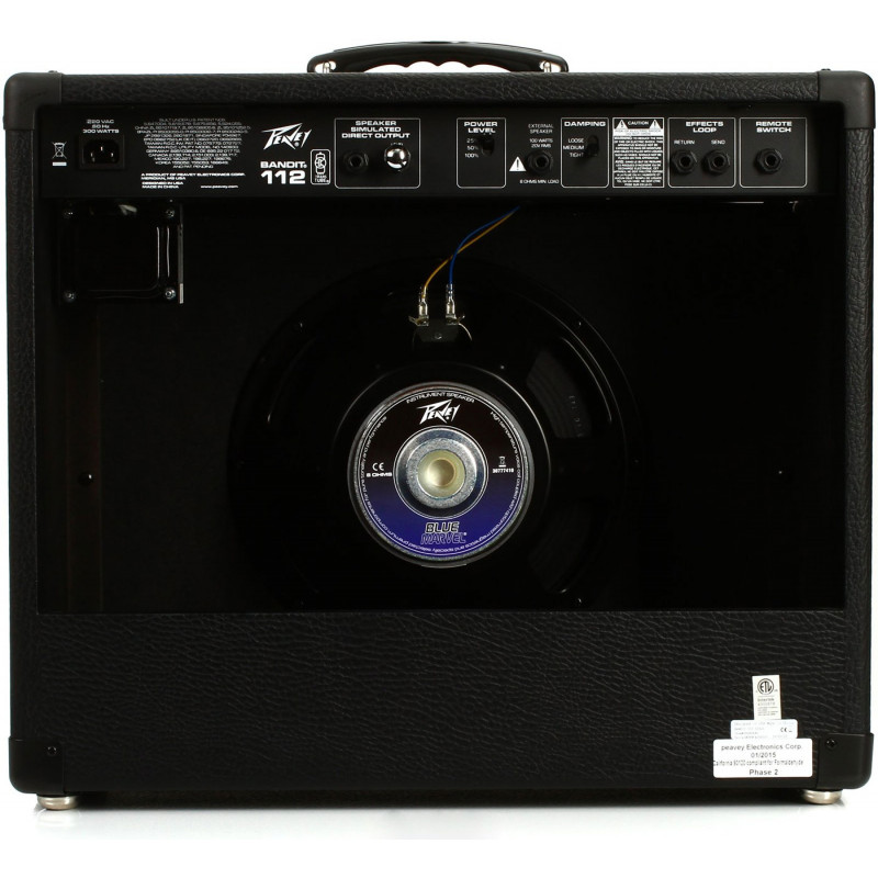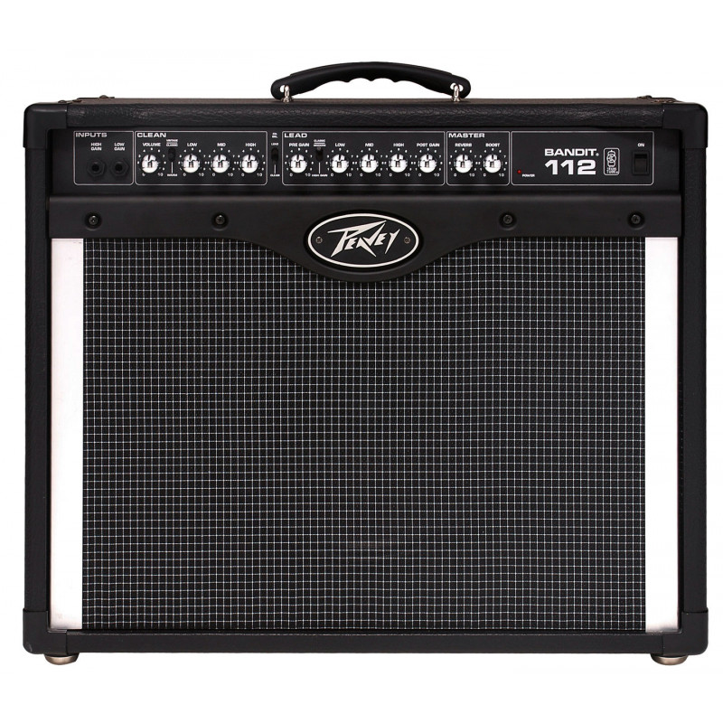 PEAVEY Bandit 112 Guitar Combo Amp - комбінований підсилювач для електрогітари, потужність: 80 Вт на 8 Ом (через вбудований динамік), 100 Вт на 4 Ом (через зовнішній шафа), динамік: 12" Blue Marvel®, ефекти: ревербератор, підсилювач, управління: Чистота каналу: Гучність, Вінтажний/Класичний/Теплий перемикач, 3-смуговий еквалайзер, Провідний канал: Pre Gain, Post Gain, Класичний/Сучасний/HiGain перемикач, 3-смуговий еквалайзер, аналогові виходи: Direct Out (з спікосмуолом), від'єднана петля FX петля, розміри: 530 x 591 x 286 мм, вага: 18,14 кг, виробництво: Китай, гарантія: 12 місяців.