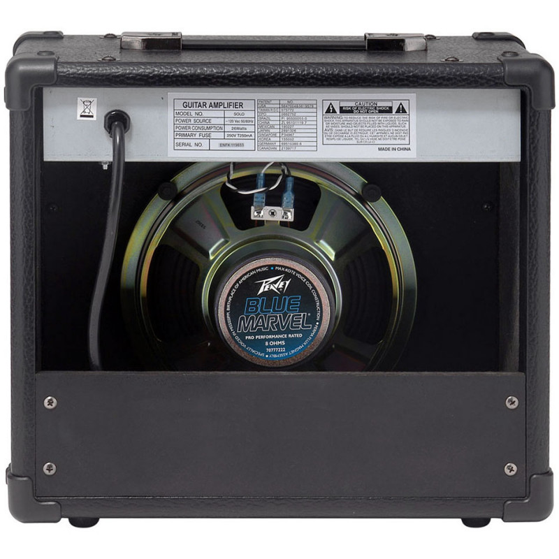 PEAVEY Solo Guitar Amp - гітарний комбо підсилювач, потужність: 12 Вт, динамік: 8", управління: об'єм, 3-смуговий еквалайзер, вимикач свинцю ON/OFF, контролер Overdrive, аналогові виходи: вихід навушників, розміри: 375 x 413 x 348 мм, вага: 5,4 кг, виробництво: Китай, гарантія: 12 місяців.