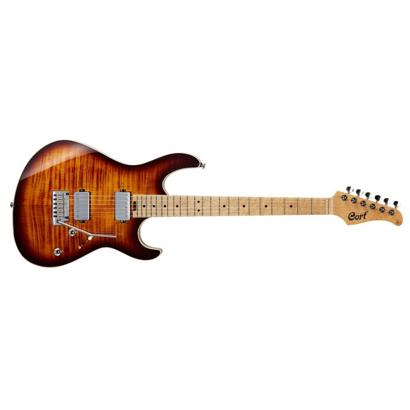 CORT G290 FAT (Античний сплеск скрипки) - електрогітара, корпус болотної золи з кленовим верхом, накручені на болти стерв'ятника клена з кленовою підкладкою, мультирадус (12"-15.75"), мензура 25.5", 22 лад, тремоло Корт CFA-III, звукозаписувачі Корт Озвучений тон VTH-77 (H-H), 1 том, 1 тон, 5-позиційний перемикач, замки, колір: Античний скрипковий сплеск (AVB).