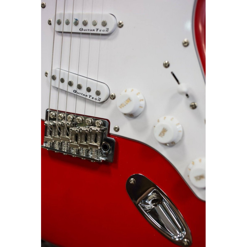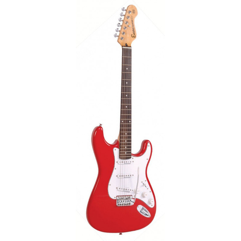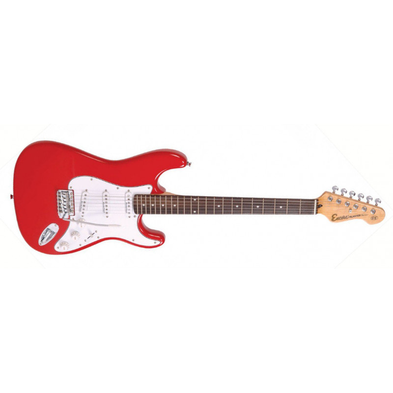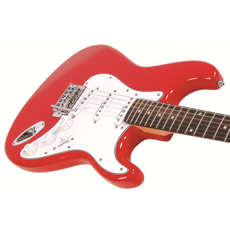 ENCORE E6RED — електрогітара, Мензура: 25,5", кількість струн: 6, тип мосту: тремоло, верхній матеріал порту: графіт, кількість ладів: 22, радіус облицювання: 254 мм, іншар: як точки, схема звукових детекторів: S-S-S, регулятори гучності: 1, тон регуляторів: 2, колір корпусу: ЧЕРВОНИЙ, колір ковпачка: хром.