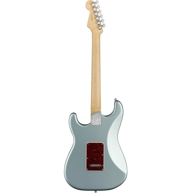 FENDER AMERICAN ELITE STRATOCASTER HSS SHAWBUCKER SATIN ICE BLUE METALLIC - електрогітара, дека - вільха, гриф - клен/чорне дерево, датчики - Новий 4-го покоління Безшумні, колір - матовий сіро-блакитний, корпус.