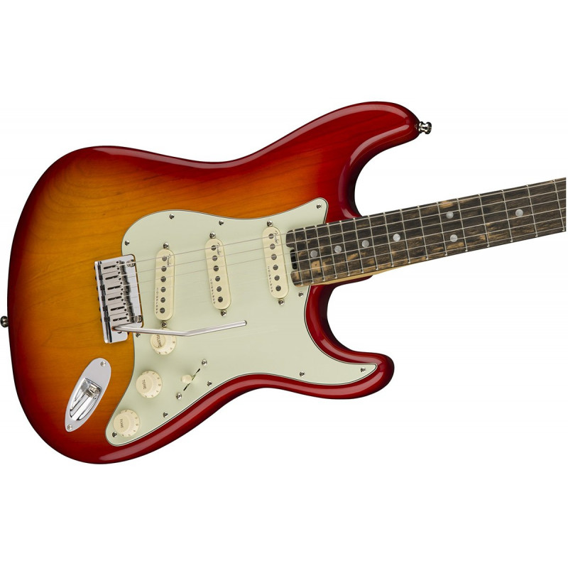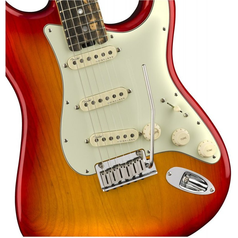 FENDER AMERICAN ELITE STRATOCASTER AGED CHERRY BURST - електрогітара, кузов - попіл, гриф - клен, 22 лади, датчики - мостошия 4-го покоління Безшумні, колір - червоно-жовтий.