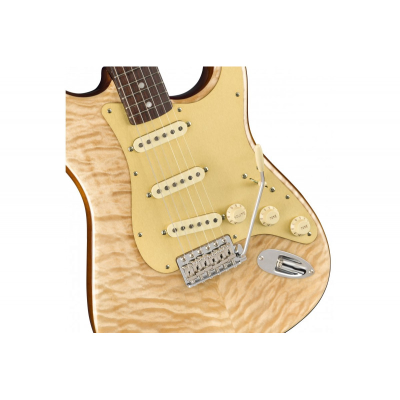FENDER RARITIES KUOL TOP STRATOCASTER - електрогітара, дека - запечена вільха з верхом стеганового клена, стерв'ятник - однотонний палісандр, звукозаписувачі -Pure Vintage '65 Gray-Bottom Single-Coil Strat, колір - натуральний, корпус включений.