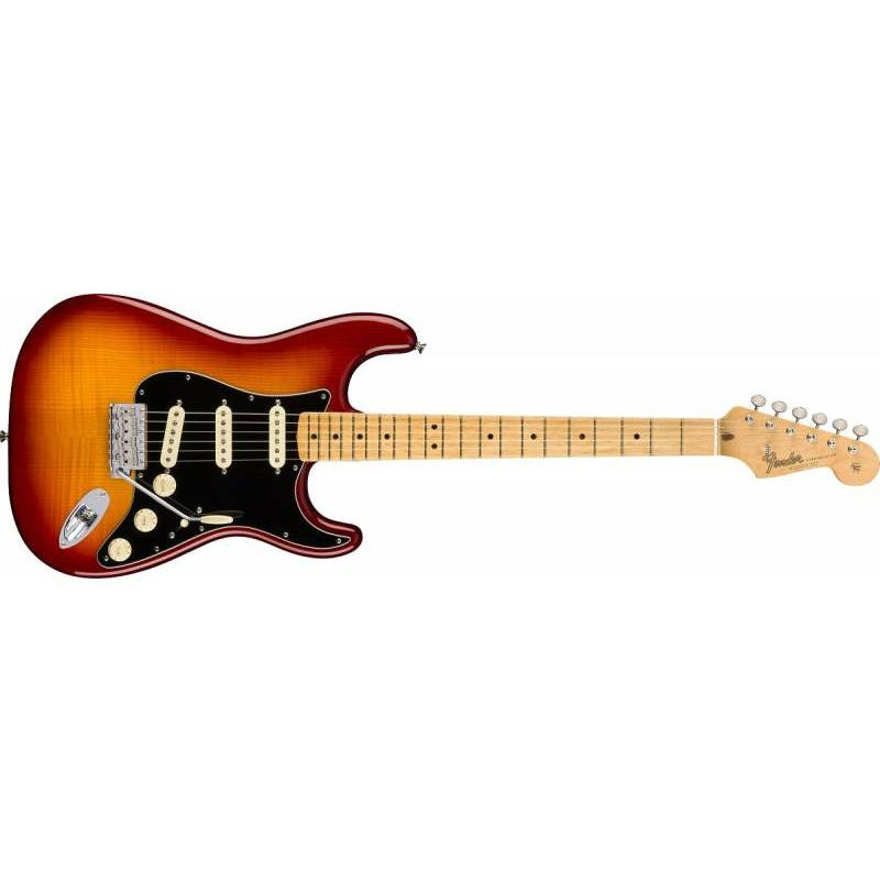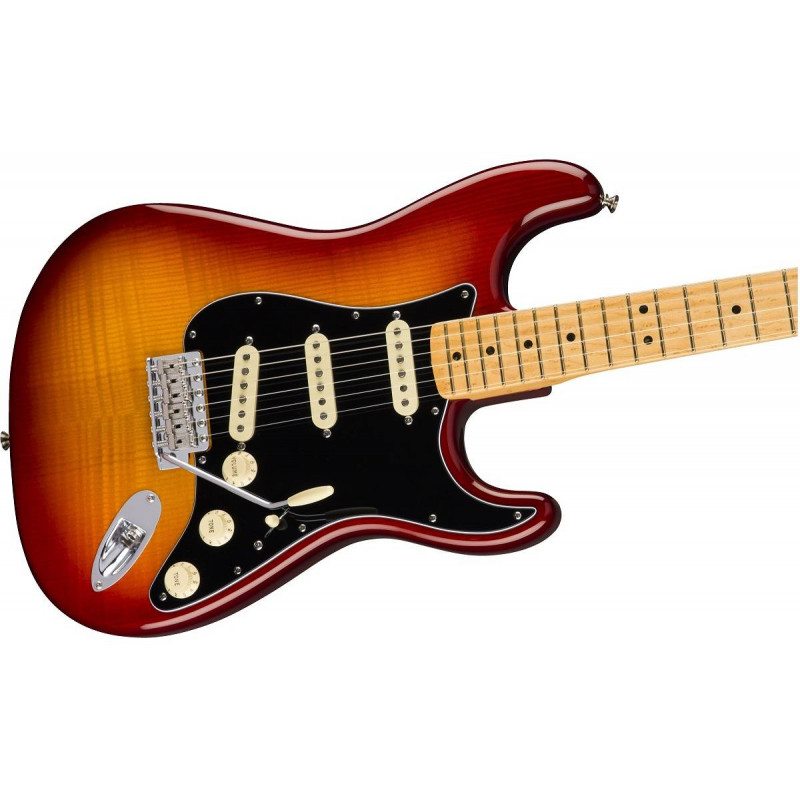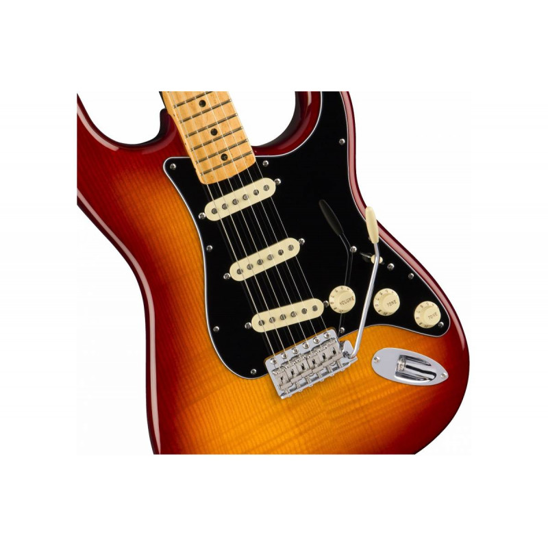 FENDER RARITIES FLAME ASH TOP STRATOCASTER - електрогітара, 6 струн, форма - стратокастер, дека - вільха з верхівкою вогненного попелу, стерв'ятник - клен "пташине око", звукові детектори - Custom Shop '54 Strat® Single-Coil (S-S-S), колір - червоно-жовтий, корпус в комплекті.