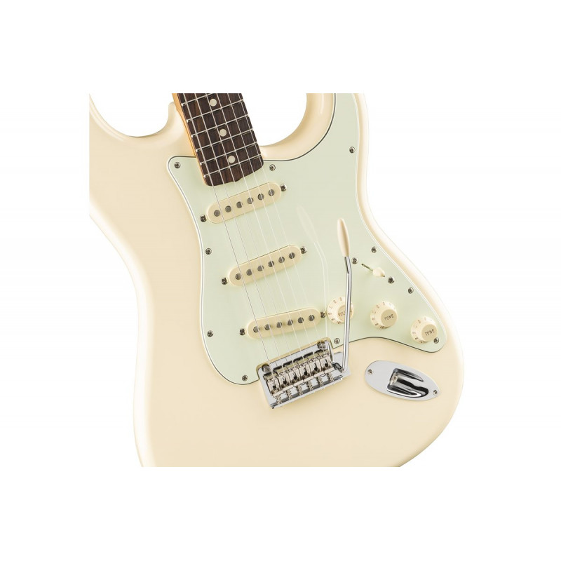 FENDER VINTERA '60s STRATOCASTER модифікований PFN Olympic WHITE - електрогітара, Вид: правий бік, кількість струн: 6, колір: білий, кількість ладів: 21, звукозаписувачі: S-S-S, тремоло: там, дека матеріал: вільха, стерв'ятниковий матеріал: клен/па ферро, мензура: 25.5" (648 мм), форма тіла: Stratocaster, тип кріплення грифів: Профіль стерв'ятника: Сучасний "C", регулятори: 1 об'єм, 2 тони, 5-позиційний перемикач, міст: 2-точковий синхронізований Тремоло з вінтажними сталевими сідлами, ставки: нікель / хром, іншар: на білі точки, струни: Fender USA 250L Нікельована покрита сталь (.009-.042 Gauges), гарантія: 12 місяців (на механічні компоненти), оздоблення: гітара, корпус серії Deluxe.