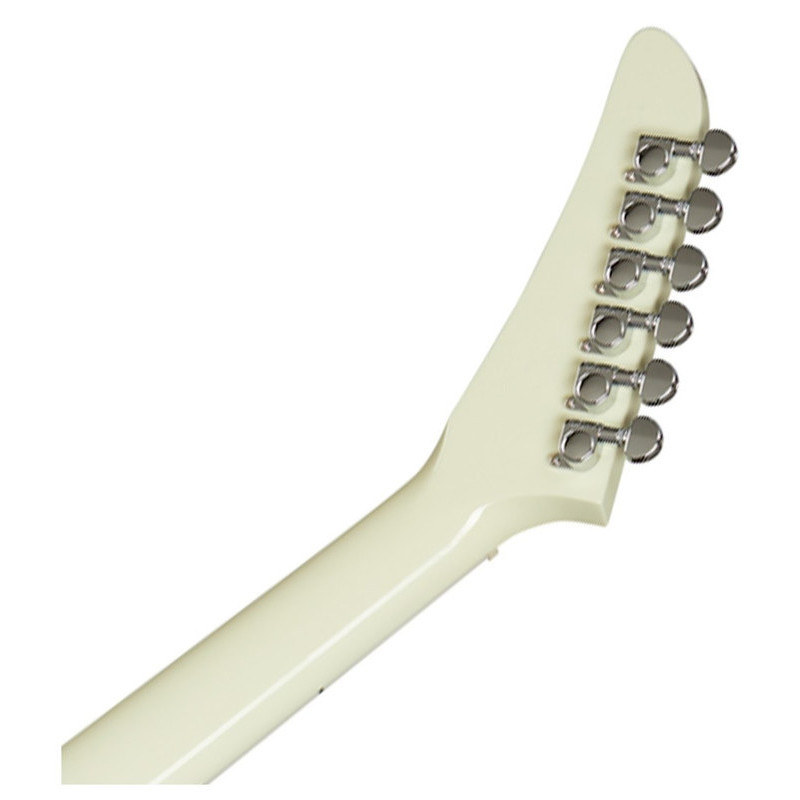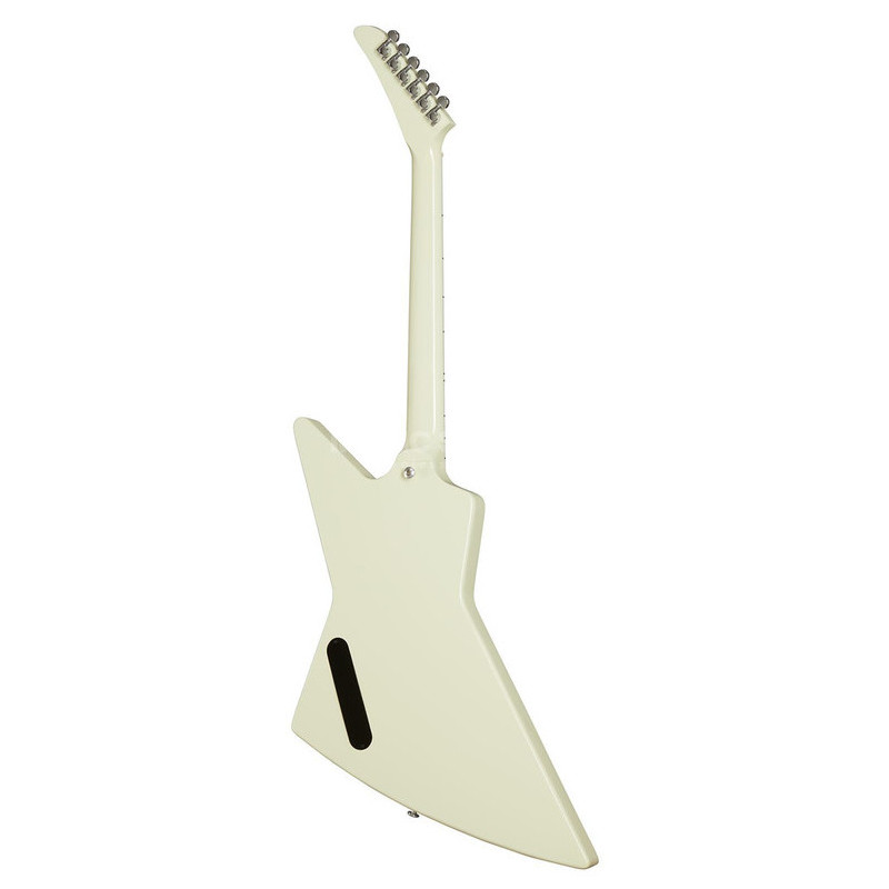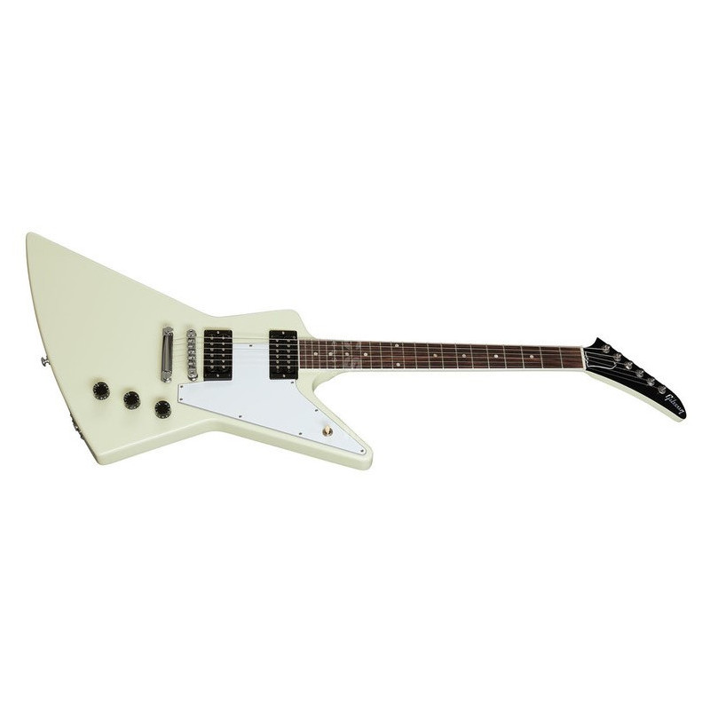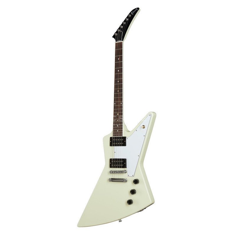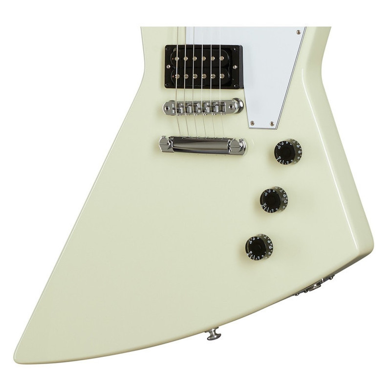 GIBSON EXPLORER 70s CLASSIC WHITE - електрогітара, тип: правий, кількість струн: 6, колір: білий, кількість ладів: 22, звукові колектори: H-H, тремоло: ні, деку матеріал: червоне дерево, стерв'ятниковий матеріал: червоне дерево / палісандер, мензура: 24.75" (629 мм), форма тіла: Explorer, Explorer Тип кріплення для горловини: склеєний, стерв'ятниковий профіль: Slim Taper, регулює: 2 об'єму, 1 тон, 3-позиційний перемикач, міст: Алюмінієвий Нешвілл Tune-O-Matic, уколи: Grover Mini Rotomatics, incrux: на гриф у вигляді акрилових точок, гарантія: 12 місяців (на механічні компоненти), обрізка: гітара, корпус.