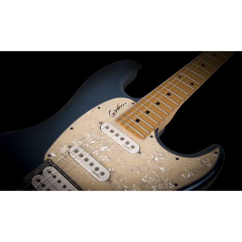 GODIN 041206 - SESSION LTD DESERT BLUE HG MN WITH BAG - електрогітара, матеріал для тіла: канадська губа, стерв'ятниковий матеріал: клен, стерв'ятник підкладка: клінг, Мензура: 25.50" (647.70 мм), верхня ширина: 1.65" (41.91 мм), звукові колектори: 2 godin GS-1 синглів, 1 Humbacker Seymour Duncan SH-11 (міст), колір: Desert Blue, покриття: блискучий лак, cofrhol/case: щільна божа сумка Стерв'ятник радіус підкладки: 12" (304.8 мм), поршні: Графік, ладів: 22, міст: Godin Tru-Loc Tremolo, регулятори: 5 позиційний перемикач, гучність, віджим/ тон, струни: E10.