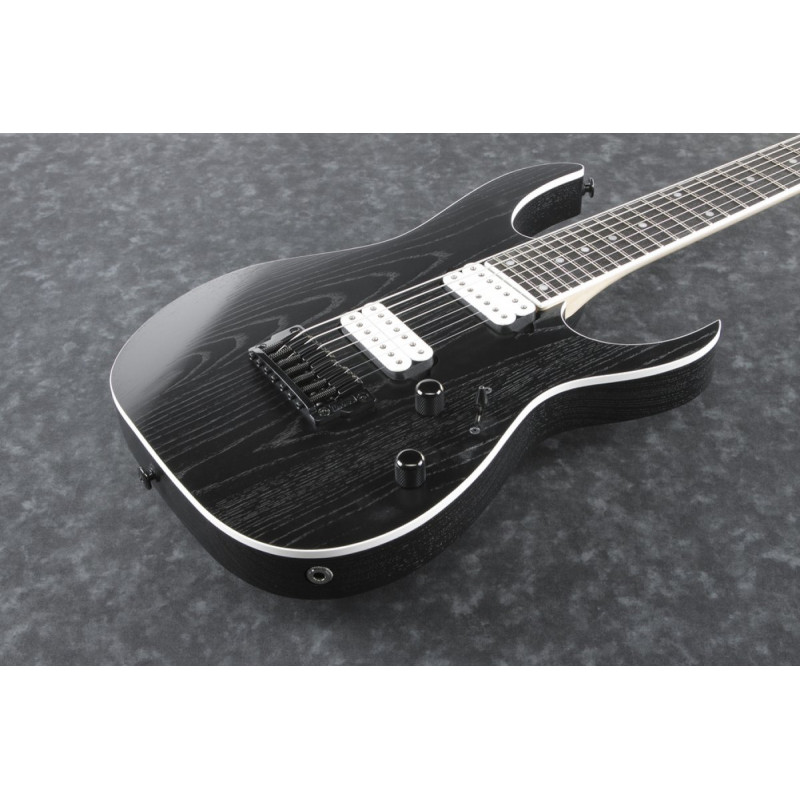 IBANE RGR752AHBF WK - електрогітара 7-струнна престижна серія, кузов - попіл, стерв'ятник - клен/веньге, підкладка - палісандер, міст Гібралтар Стандарт II-7, датчики DiMarzio® Fusion Edge, Wheels Gotoh® MG-T, колір чорний, корпус в комплекті.