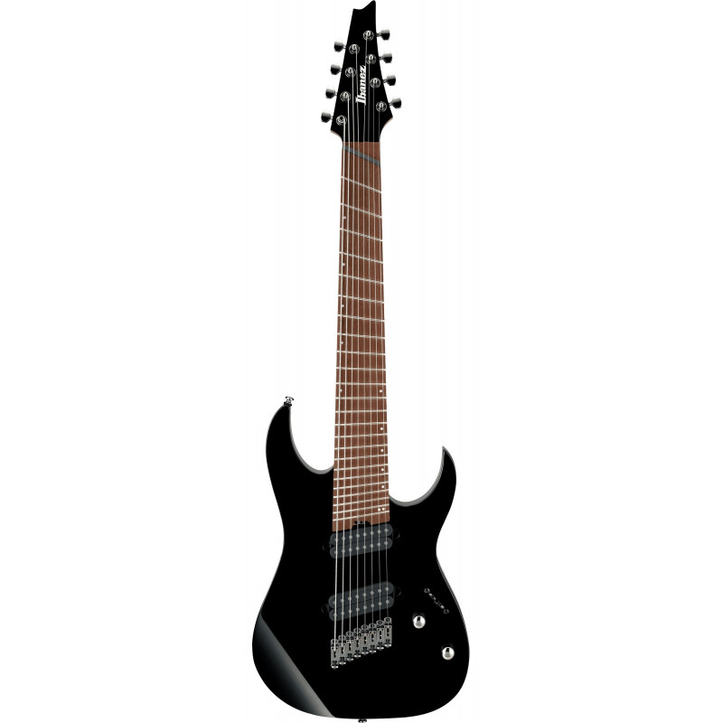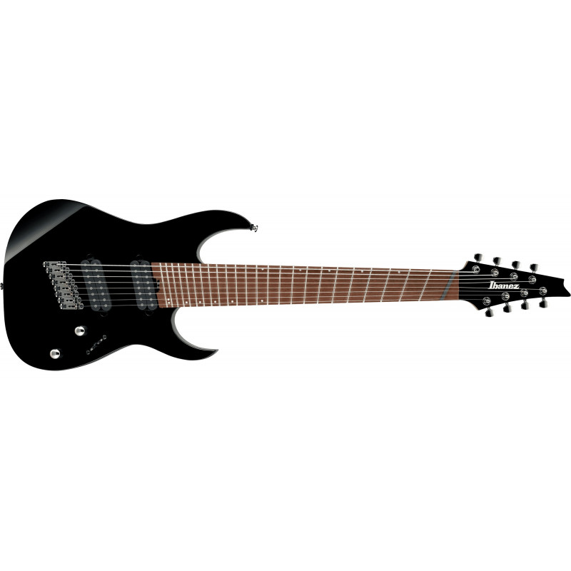 IBANE RGMS8-BK - електрогітара 8-струнна мультимензу, колода - червоне дерево, гриф - 5 шарів клена/горіха з підкладкою з кнопкою yatomba, звукові детектори - Array-8 MS, фіксований монорейковий міст, колір - чорний.