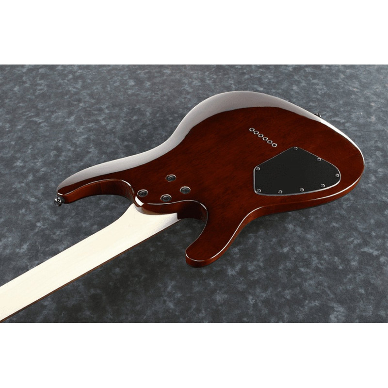 Фіксований міст дозволяє гітарі надійно тримати лінію. S621-M DEB оснащений пасивними гумбакерами з керамічними магнітами, які дозволяють посилені нижні частоти, потужний середній і чіткий, чудово зчленований верх. Перемикач є 5-позиційний. Для регулювання звуку використовуються регулятори гучності та тембру. IBANE S621-M DEB має рядки .010 - .046.