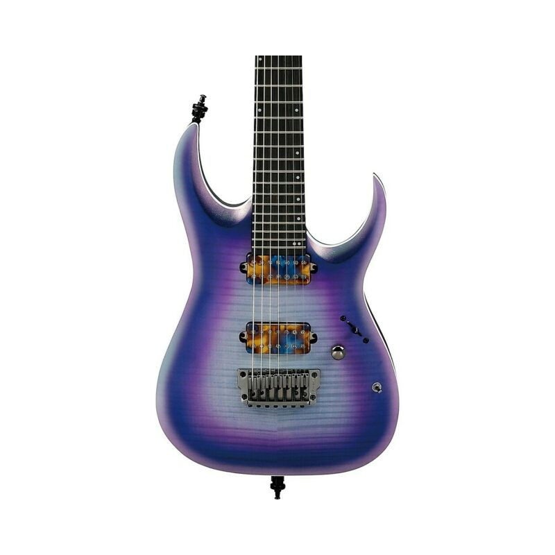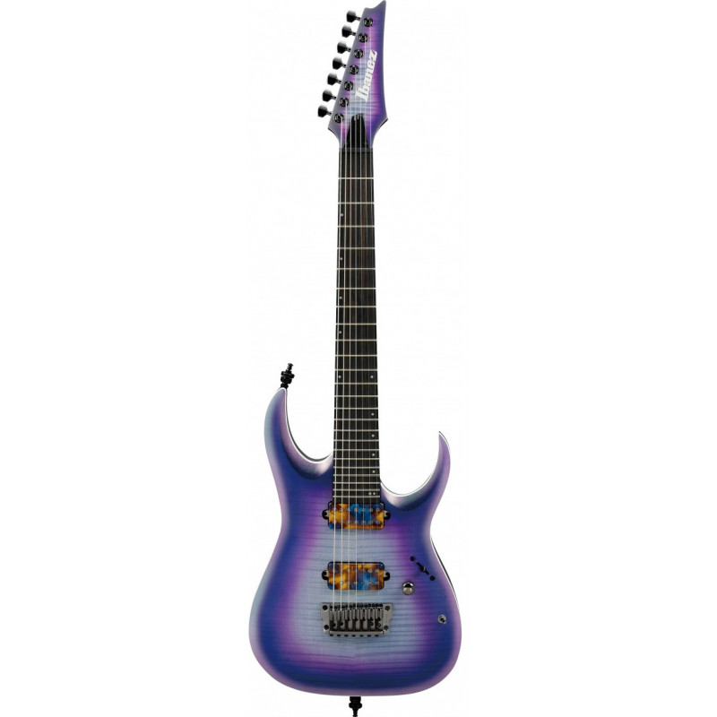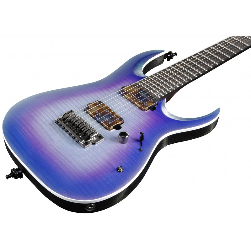 IBANE RGA71AL IAF - 7 струнна електрогітара, серія Axion Label, deca - ньято/вогняний клен, гриф - 5 шарів панги/горіха з накладенням чорного дерева, звукові детектори - Bare Knuckle Aftermath, колір - Indigo Aurora Burst.