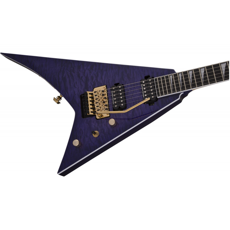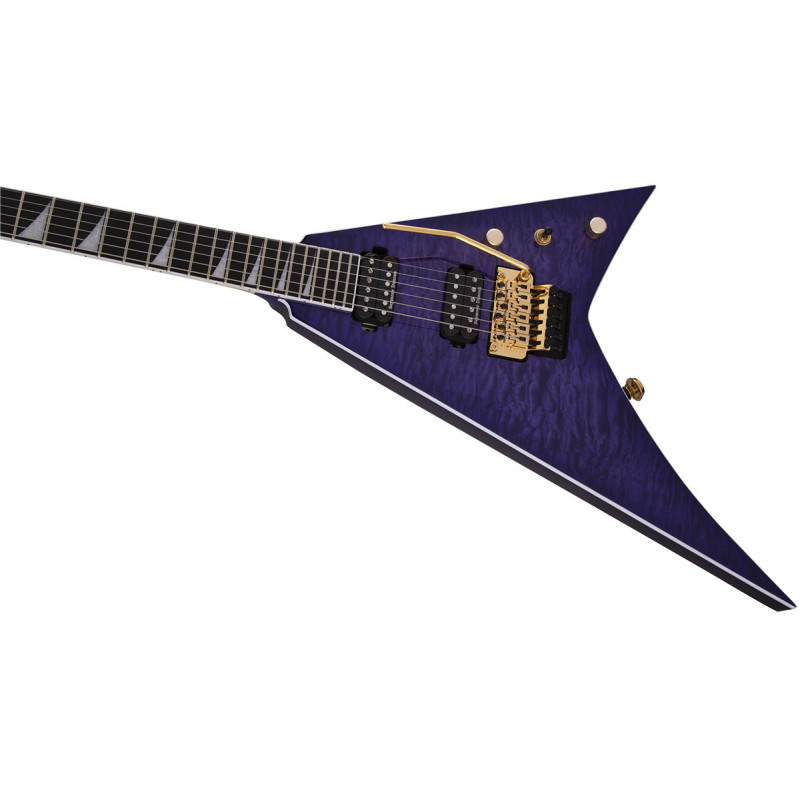 JACKSON PRO СЕРІЯ RR24' EBONY FRETBOARD TRANS PURPLE - електрогітара, вид: правий, кількість струн: 6, колір: фіолетовий, кількість ладів: 24, звукові колектори: H-H, tremolo: там, деку матеріал: червоне дерево / bling, стерв'ятник матеріал: клен / ебоні, Мензура: 25.5" (648 мм), форма корпусу: Роди, тип насадки стерв'ятника: наскрізний, стерв'ятниковий профіль: Speed Neck, регулює: 1 том, 1 тонна, 3 положення Перемикач, Міст: Floyd Rose 1000 Series Подвійне блокування Тремоло (Recessed), колючі: Джексон запечатаний Die-Cast, інкрустації: на стерв'ятник у вигляді перламутрових