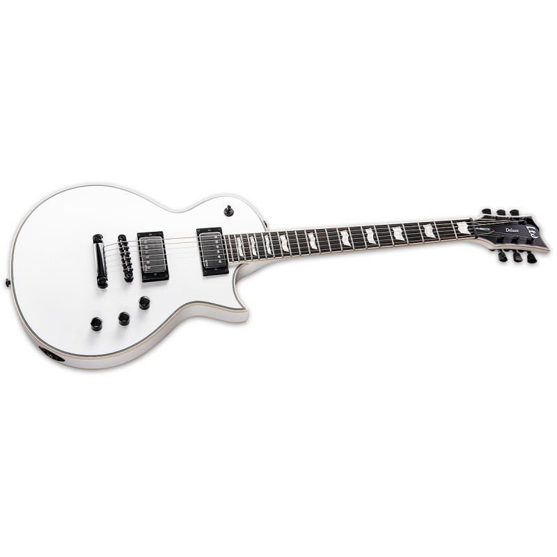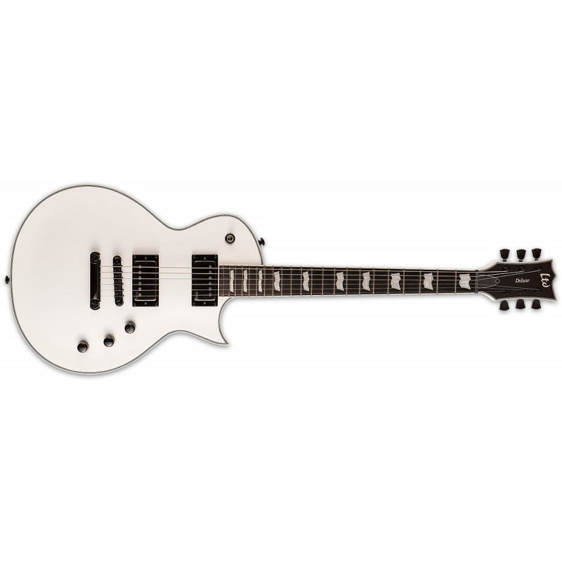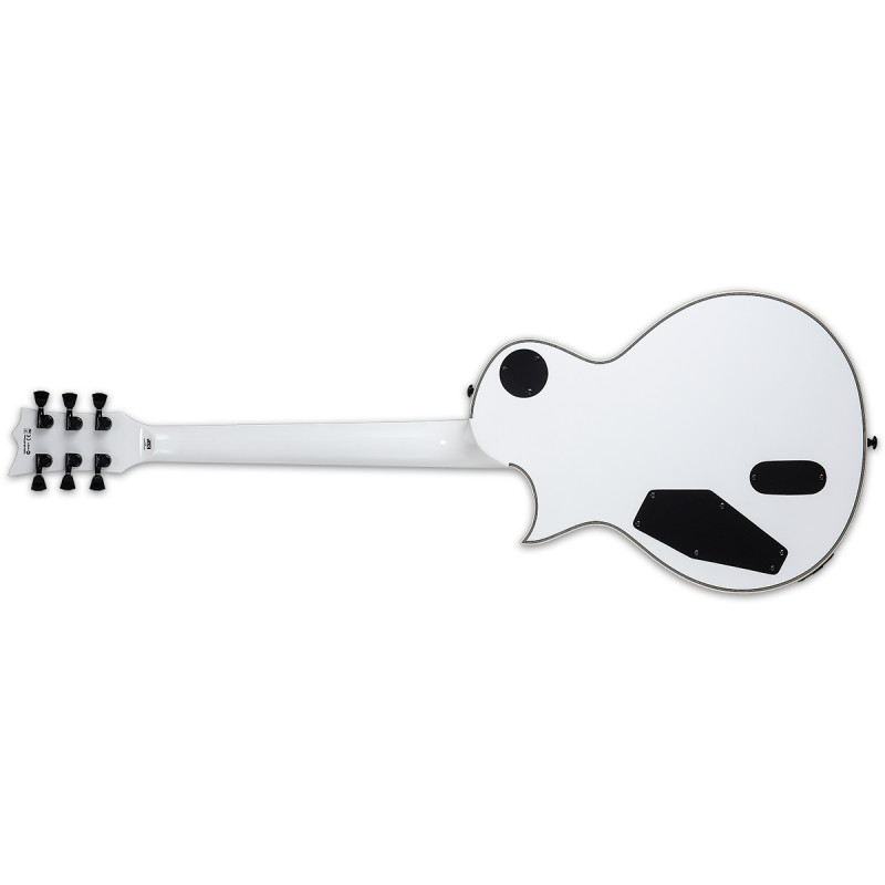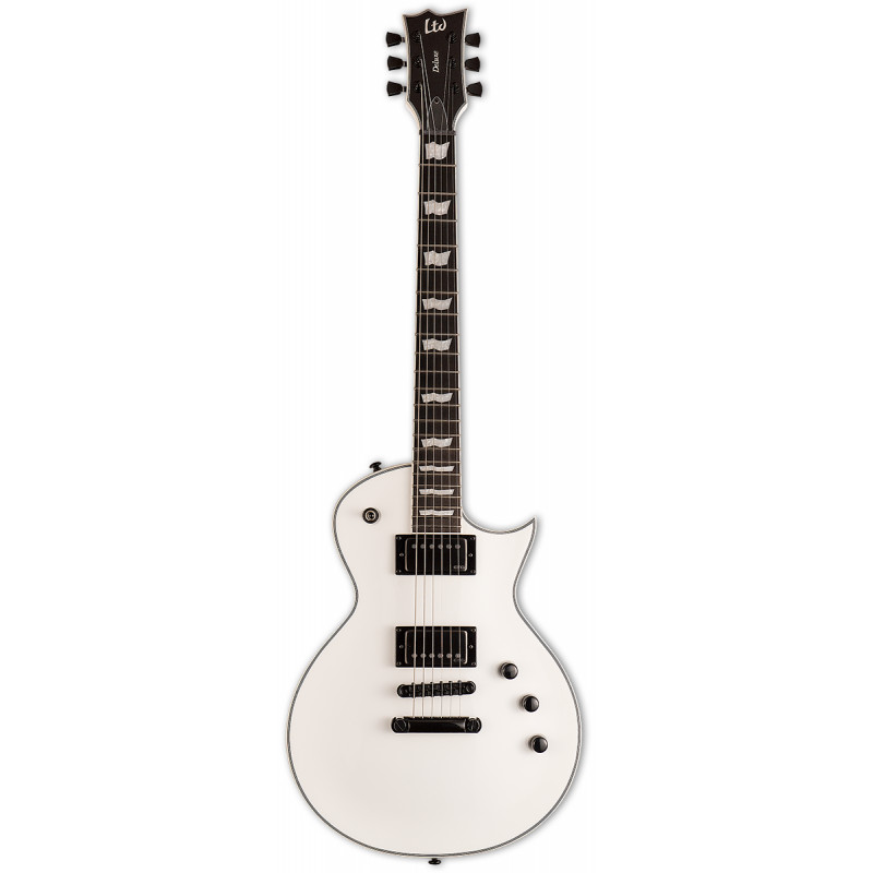 LTD EC-1001T CTM (Білосніжка) - електрогітара, тип дизайну: глибоко приклеєний гриф (встановлений через), корпус: червоне дерево з кленовим верхом, мензура: 24.75" гриф: червоне дерево, 3 штуки, стерв'ятник підкладка: чорне дерево (чорне дерево), стерв'ятниковий профіль: Тонкий U, ширина грифів: 42 мм (верхній флогінг), радіус облицювання шиї: 350 мм, інкрустовані: грак маркери, оклами: чорний і слонова кістка, Тіло і шия, міст: Tonepros Блокування TOM q Tailpiece, датчики звуку: EMG 66TW / 57TW, лад: 22 XJ, механіка: чорний, ставки: замок ТОВ.