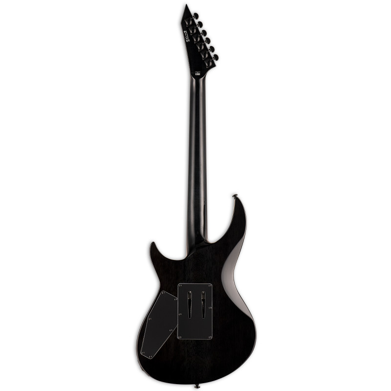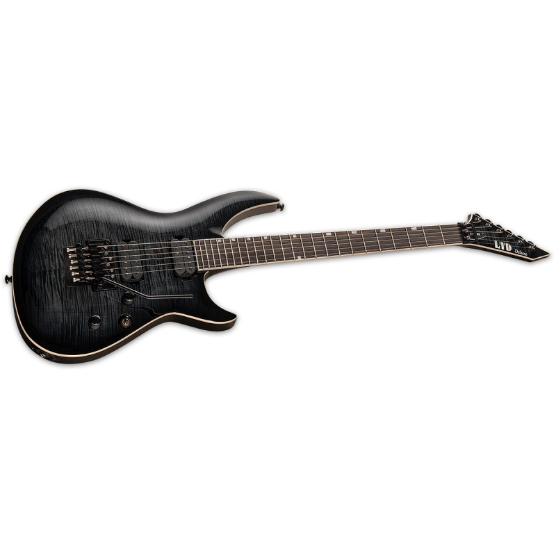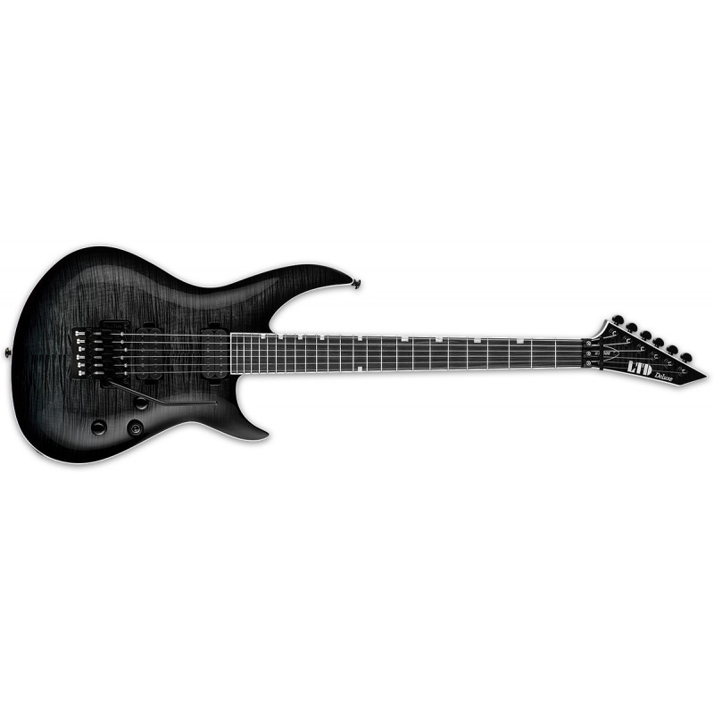 LTD H3-1000FR (Див. Через Black Sunburst) - електрогітара, корпус червоного дерева з верхом хвилястого клена, глибоко наклеїв (встановлений через) кленовий гриф з накладенням чорного дерева, біла окантовка кору і грифів, мензура 25,5", 24 XJ лад, тремоло Floyd Rose 1000SE, звукові колектори Сеймур Дункан Пегас (міст), Сеймур Дункан Сентіент (шия), 1 том, 1 тонна (push-басейн), 3-позиційний перемикач, замкові колеса, чорна механіка , колір: Див.Через чорний сонячний проміння (STBLKSB).