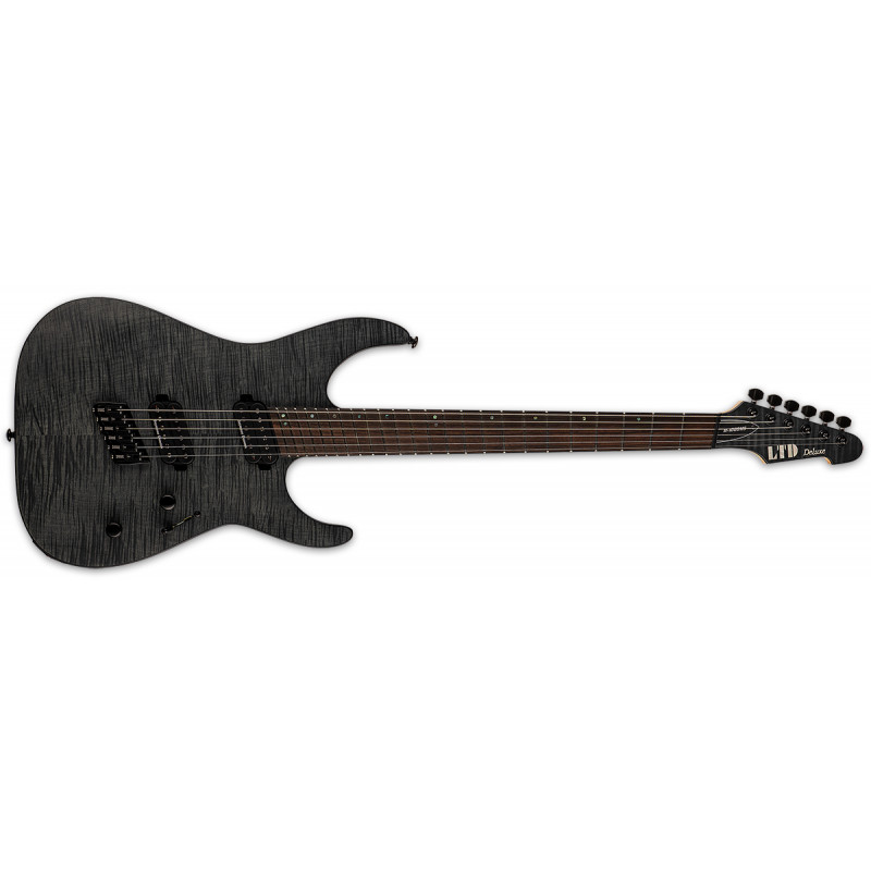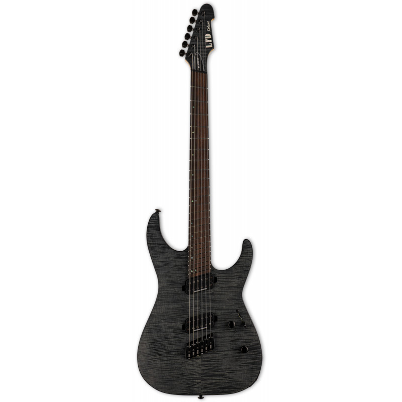 LTD M-1000 MULTI-SCALE FM (Див. Через чорний атлас) - електрогітара, корпус з червоного дерева з кленовим верхом, Болтовий гриф, клен/перпларт з накладенням чорного дерева, мультимензура 25.5"-26.5", 24 XJ fret, міст Hipshot w/ String Thru, рило Сеймур Дункан Назгул / Дункан Сентимент, 1 том, 1 тонна (push-pool), 3-позиційний перемикач, колір: Thru Black Satin (STBLKS).