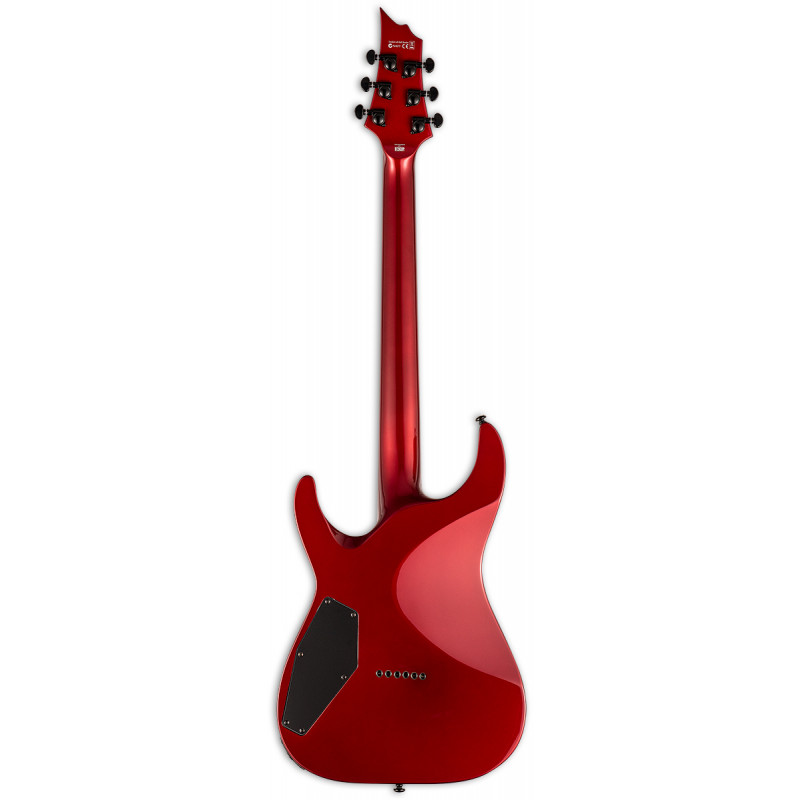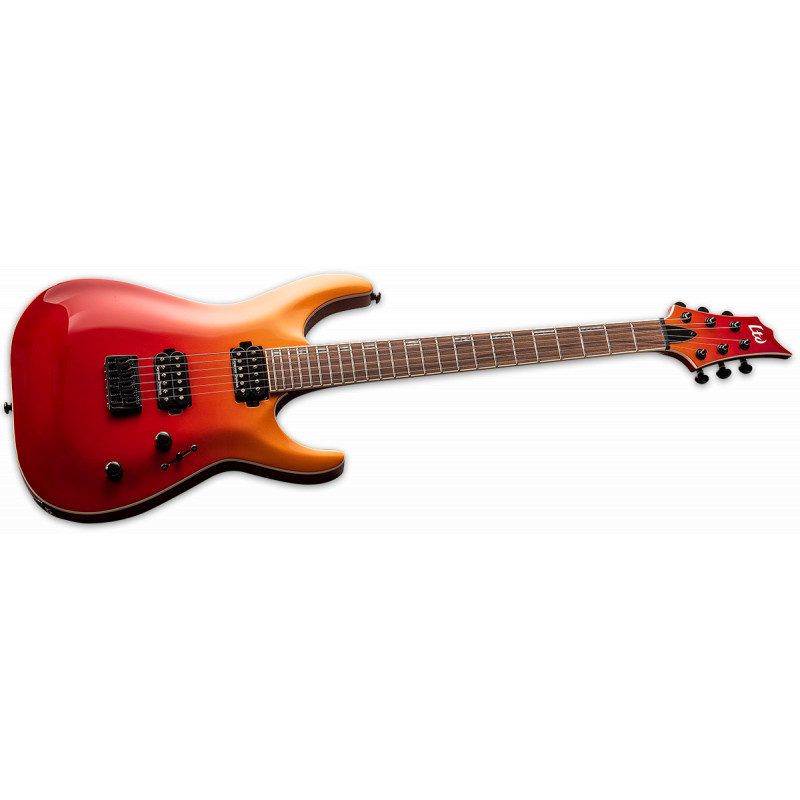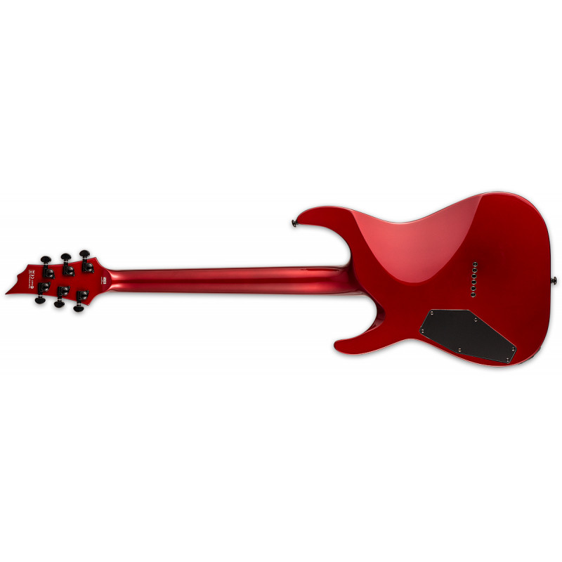 LTD H-400 (Багряний фад) - електрогітара, Тіло з червоного дерева, глибоко вклеєне (встановлене через) кленове стерв'ятник з пао ферро підкладкою, мензура 25.5, 24 XJ лад, нерухомий міст з струнами через тіло, Сеймур Звичай Дункан 5/Джаз, ставки Гровера, 1 том, 1 тонна, 3-позиційний перемикач, колір: Малиновий (KVMSFD), виробництво: Індонезія.