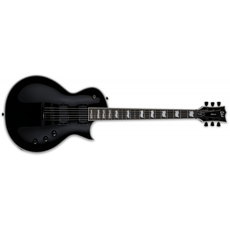 LTD EC-1000S FLUENCE (Black) - електрогітара, корпус з червоного дерева, глибоко наклеїв гриф з червоного дерева з накладенням чорного дерева, біла оцтовка коруса і грифа, інкрустація грифом, мензура 24.75", 24 XJ лад, міст TonePros Tune-O-Matic, Fishman Fluence Modern Humbucker Ceramic / Alnico (H-H), замкові ставки, 2 томи, 1 тонна (push-pool), 3-позиційний перемикач, чорна механіка, колір: BlackLK (BKF), виробництво: