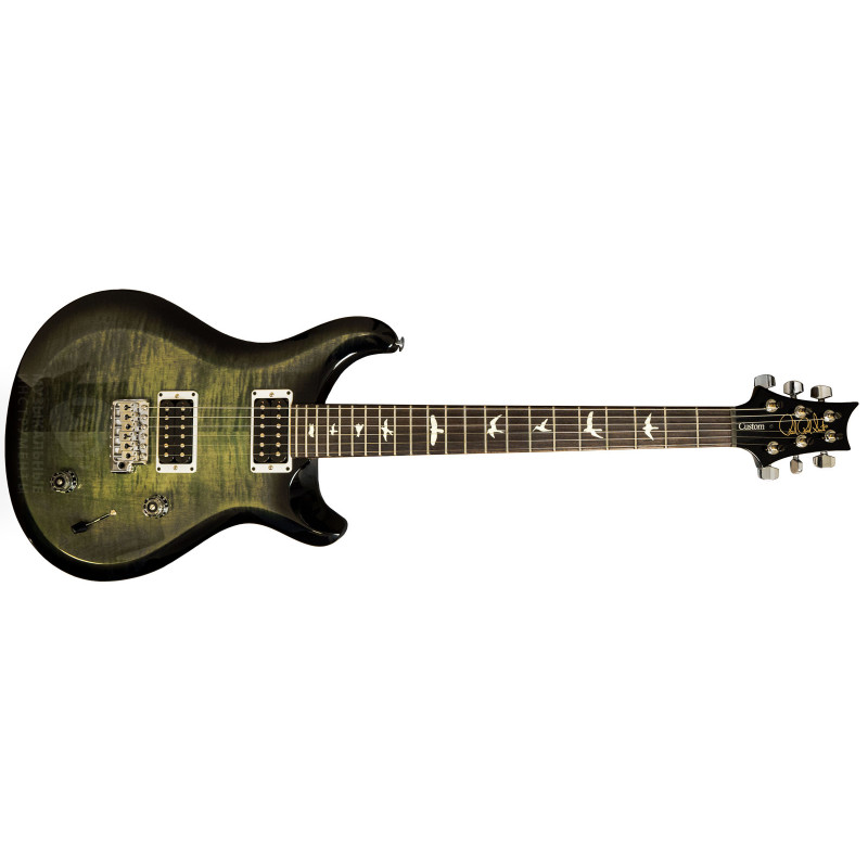 PRS S2 CUSTOM 22 (Elephant Grey Smokeburst) - електрогітара, тип дизайну: склеєний гриф, корпус: червоне дерево з кучерявою верхівкою клена, мензура: 25", гриф: червоне дерево, підкладка з грифом: палісандер, товщина шиї: 27/32" (нульовий лад), профіль грифів: звичайний, Ширина візерунка гриф: 1 21/32" (нуль), 2 1/4" (на місці стерв'ятникового клею в корпусі), інкрустовані: маркери ладів у вигляді птахів, міст: Tremolo PRS Запатентований Тремоло, Литий, звукозаписувачі: 85/15 "S" / 85/15 "S", Frets: 22, Механіка: Нікель, Ставки: Блокування PRS Низька маса блокування, управління: об'єм / тембр / push pool / 3-позиційний перемикач, колір: Слон сірий димобур, оздоблення: гітара, фірмовий корпус, якір і тремоло ключі, виробництво: США, гарантія: 12 місяців (на механічних і електронних компонентів приладів).