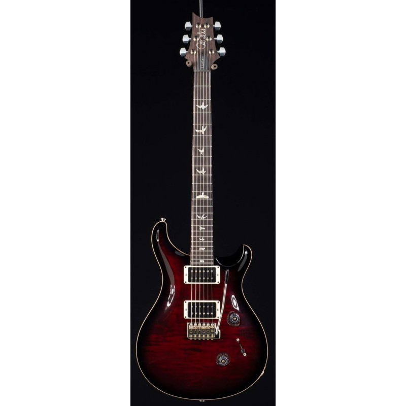 PRS S2 CUSTOM 22 (Fire Red Smokeburst) - електрогітара, тип дизайну: склеєний гриф, корпус: червоне дерево з кучерявим верхом клена, Мензура: 25", стерв'ятник: червоне дерево, стерв'ятник підкладка: палісандр, товщина шиї: 27/32" (нульовий лад), профіль грифів: візерунок звичайний, ширина грифу: 1 21/32" (нульовий лад), 2 1/4" (на місці стерв'ятникового клею в корпусі), інкрустація: маркери ладів птахів, Міст: Тремоло PRS запатентований Тремоло, Ліпний, Саундерс: 85/15 "S" / 85/15 "S", лад: 22, Механіка: нікель, ставки: замок PRS Низька маса блокування.