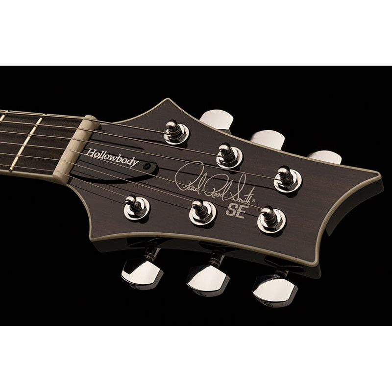 PRS SE Hollowbody II (Вугільний вибух) - електрогітара типу «порожнистий», зверху: клен з верхом хвилястого клена, обітниця: червоне дерево, дно: клен з високим хвилястим кленовим, наклейка з червоного дерева грифом з накладенням чорного дерева, 22 лад, мензура 25", інш тип "Птахи", міст PRS Регульований стоптейл, звукозаписувачі 58/15 "S" (H - H), управління: гучність, тон, 3-позиційний перемикач, механіка, колір: