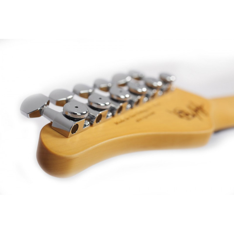 SCHECTER NICK JOHNSTON DS TRAD A.SLVR - електрогітара, насадка для грифів: болти, матеріал корпусу: вільха, стерв'ятниковий матеріал: клен, підкладка стерв'ятника: палісандер, флейта: точки, мензура: 25.5" (648 мм), лади: 22 X-Jumbo, радіус грифів: 14" (355 мм), Розміри ладів: 1-й лад - .826" (21 мм)/ q 12-й лад - .866" (22 мм), верхній флогінг: Графік Tech XL Чорний Tusq ширина Удар: 1,653 " (42 мм), якір: подвійний, регульований, з 4 мм якірним болтом, міст: Diamond Vintage Tremolo, датчики звуку: три Schecter Diamond Нік Джонстон Single Coil.