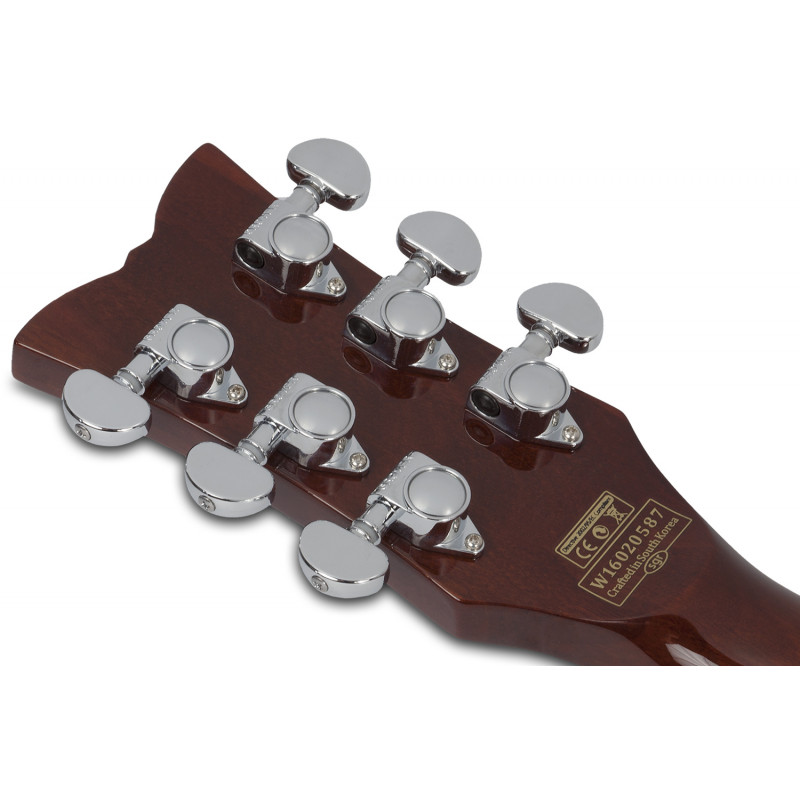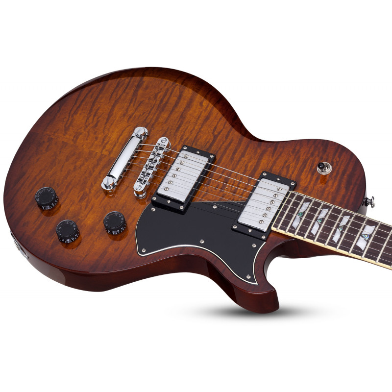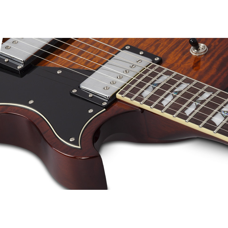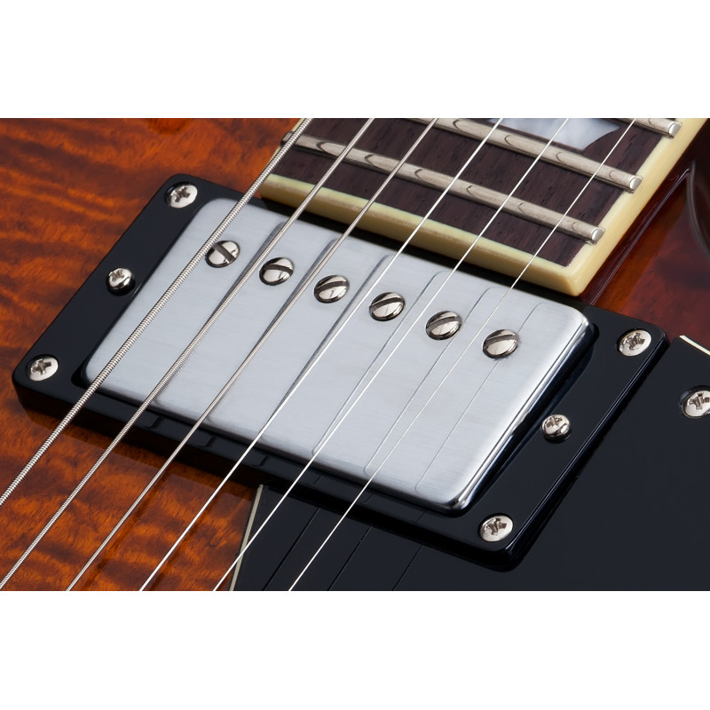 SCHECTER SOLO-II STANDARD FVSB - електрогітара, матеріал корпусу: червоне дерево, верхній матеріал: хвилястий клен, матеріал стерв'ятника: 3-шматкове червоне дерево, стерв'ятникове кріплення: Сет-Шия, підкладка стерв'ятника: палісандер, фритюрниця: Перлоїд і Амалон Tempest Split Crown, мензура: 24.75" (628 мм), лади: 22 X-Jumbo, радіус грифів: 12" (305 мм), Розміри ладів: 1-й лад - .826" (21 мм)/ q 12th fret - .905" (23 мм), поршні: Graph Tech XL Ivory Tusq, ширина пори: 1.653" (42 мм), Якір: подвійний, регульований з 4 мм якірним болтом, міст: TonePros T3BT TOM, T1' Tailpiece, Bridge Soundmaker: Schecter Diamond Alnico Plus, SoundMaker: Schecter Diamond Alnico Plus, Регулятори: об'єм / гучність / тон (Push-Pull)/3 пози. Перемикач, облягаючий колір: хром, нерівності: Гровер, колір: Бляклий вінтажний сонячний проміння (FVSB).