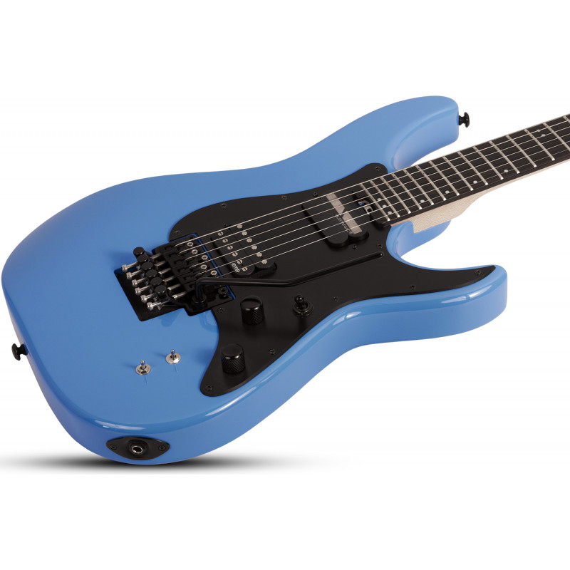 SCHECTER SUN VALLEY SS FR S RBLU - електрогітара, стерв'ятникове кріплення: болти, матеріал корпусу: червоне дерево, стерв'ятниковий матеріал: клен, облицювання грифом: чорне дерево, лад знаки: Offset/Reverse Dots, menzura: 25.50" (648 мм), лад: 24 X-Jumbo, радіус грифів: 14" (355 мм), форма грифу: Тонкий 'C', розміри лад: 1-й лад - .787" (20 мм)/ q 12-й лад - .866" (22 мм), f 41,3 мм, якір: подвійне, регульоване колесо, на п'ятці гриф, міст: Floyd Rose Special 'Hot Rod' Locking Tremolo (Schecter Exclusive).