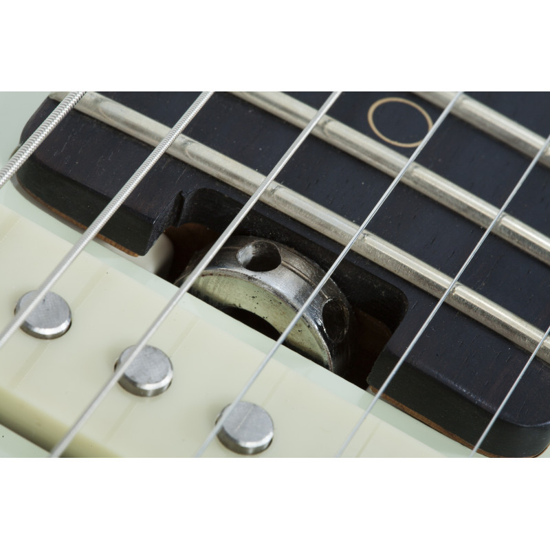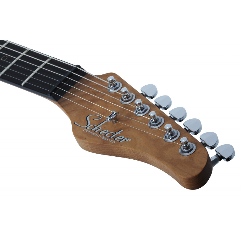 SCHECTER NICK JOHNSTON TRAD ASNW - електрогітара, насадка для грифів: болти, матеріал корпусу: вільха, стерв'ятниковий матеріал: «смажений» клен, облицювання грифом: чорне дерево, фритюрниці: латунні кола, мензура: 25,5" (648 мм), лад: 22 X-Jumbo, радіус грифів: 14" (355 мм), форма стерв'ятника: Розміри ладів: 1-е лад - .787" (20 мм)/ q 12-е лад - .866" (22 мм), верхній флоган: Графік Tech XL Чорний Tusq, ширина: 1,653" (42 мм), якір: подвійний, регульований колесо, на п'ятці грифа, міст: Diamond Vintage Tremolo, звукозаписувачі: три Schecter Diamond Нік Джонстон Single Coil.