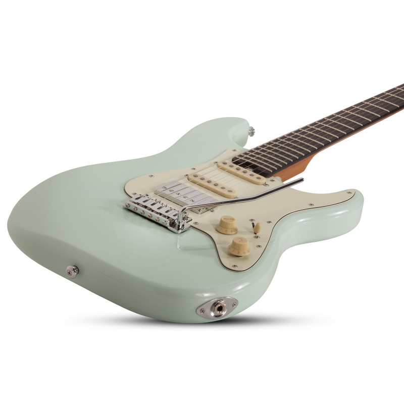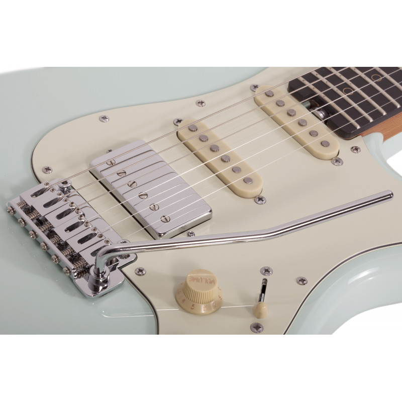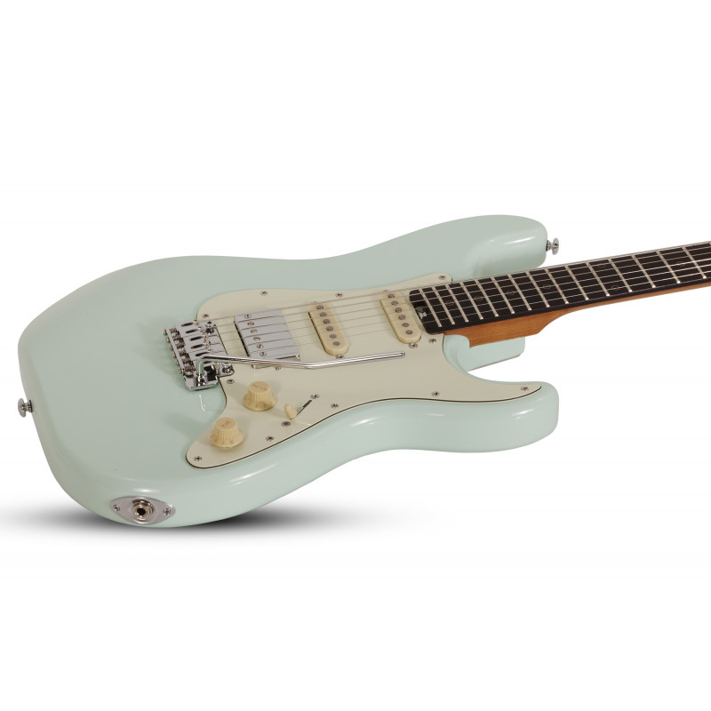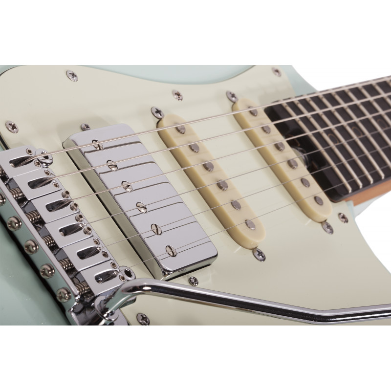 SCHECTER НІК ДЖОНСТОН TRAD H/S/S AFST — електрогітара, насадка для грифів: болти, матеріал корпусу: вільха, стерв'ятниковий матеріал: «смажений» клен, підкладка з грифом: чорне дерево, сліди лад: мідні кола, мензура: 25,5" (648 мм), лад: 22 X-Jumbo, радіус грифів: 14" (355 мм), стерв'ятник форми: Тонкий 'C', Розміри ладів: 1-е лад - .787" (20 мм)/ q 12-е лад - .866" (22 мм), верхній флоґінг: Graph Tech XL Black Tusq, ширина пори: 1.6 53" (22 мм Якір: подвійний, регульоване колесо, шия п'ята, міст: Diamond Vintage Tremolo, звукорежисурі: Schecter Diamond '78 і два Schecter Diamond Single Нік Джонстон, регулятори: гучність / тон (Push-Pull)/5 пози. Перемикач, прилягаючий колір: хром, уколи: Замок Шектер, колір: Атомний МОРОЗ (AFST).