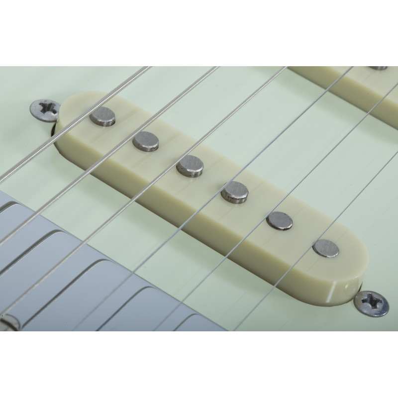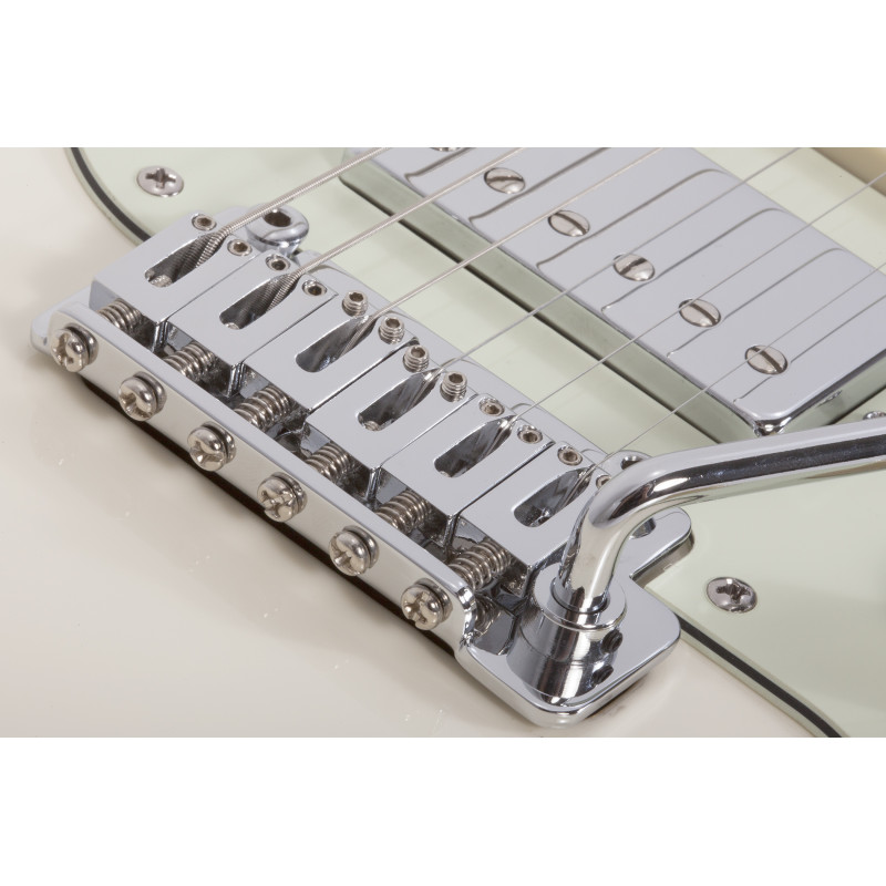 SCHECTER НІК ДЖОНСТОН TRAD H/S/S ASNW — електрогітара, насадка для грифів: болти, матеріал корпусу: вільха, стерв'ятниковий матеріал: «смажений» клен, підкладка з грифом: чорне дерево, сліди лад: мідні кола, мензура: 25,5" (648 мм), лад: 22 X-Jumbo, радіус грифів: 14" (355 мм), стерв'ятник форми: Тонкий 'C', Розміри ладів: 1-е лад - .787" (20 мм)/ q 12-е лад - .866" (22 мм), верхній флоґінг: Graph Tech XL Black Tusq, ширина пори: 1.6 53" (22 мм Якір: подвійний, регульоване колесо, шия п'ята, міст: Diamond Vintage Tremolo, звукорежисурі: Schecter Diamond '78 і два Schecter Diamond Single Нік Джонстон, регулятори: гучність / тон (Push-Pull)/5 пози. Перемикач, колір прилягання: хром, уколи: Замок Шектер, колір: Atomic SNOW (ASNW).