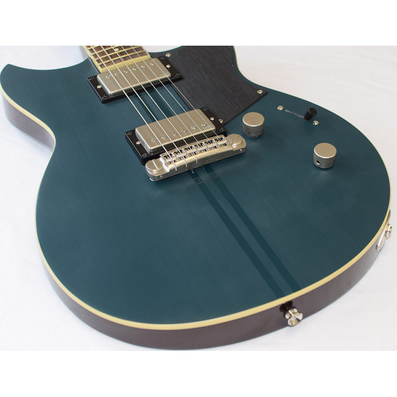 YAMAHA REVSTAR RS820CR (Щітка teal Blue) - електрогітара, тип дизайну: вставлений гриф (встановлена шия), корпус: червоне дерево з кленовим верхом, мензура: 24.75" (628.6 мм), гриф: червоне дерево, підкладка: гриффандер (Rosewood), радіус грибара: 350 мм, радіус грифа: 350 мм, інверсія: точки, оцтовка: білий, корпус і шия, міст: Tonepros AVT-II, детектори звуку: 2 x VH5 (гамбакери з матовою кришкою нікелю), лад: 22 джумбо-фрети, механік : матовий нікель, вугілля: ставки закритого типу.