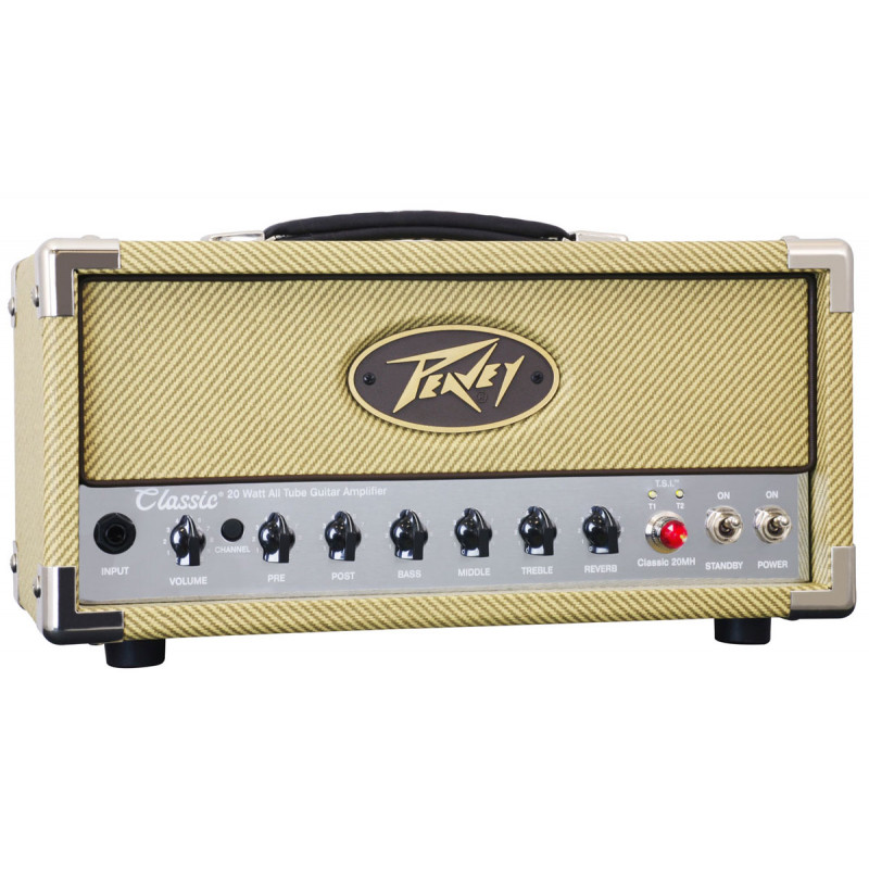 PEAVEY Classic 20 MH Міні підсилювач голова - лампа підсилювач голови гітари, потужність: 20 Вт, управління: Канал 1: Гучність. Канал 2: Pre Gain, Post Gain, Global: Bass, Middle, Treble, Reverb, ефекти: реверберація, інтерфейси: футзальний вхід (додається), аудіовихід USB, аналогові виходи: відключена петля FX петлі, вихід XLR (з спіксісомоуляцією), вихід навушників, розміри: 185 х 356 х 197 мм, вага: 8 кг, виробництво: Китай, гарантія: 12 місяців.